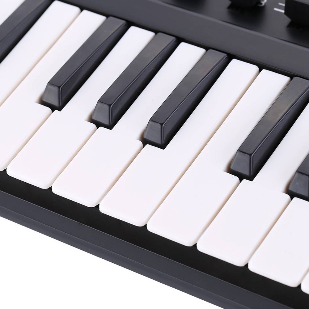 25 скоростных чувствительных мини-клавиш, с 3 кривой скорости и 1 постоянной скоростью; 4 присваиваемых поворотных ручки и 4 присваиваемых слайдера, каждый может быть изменен пользователями.