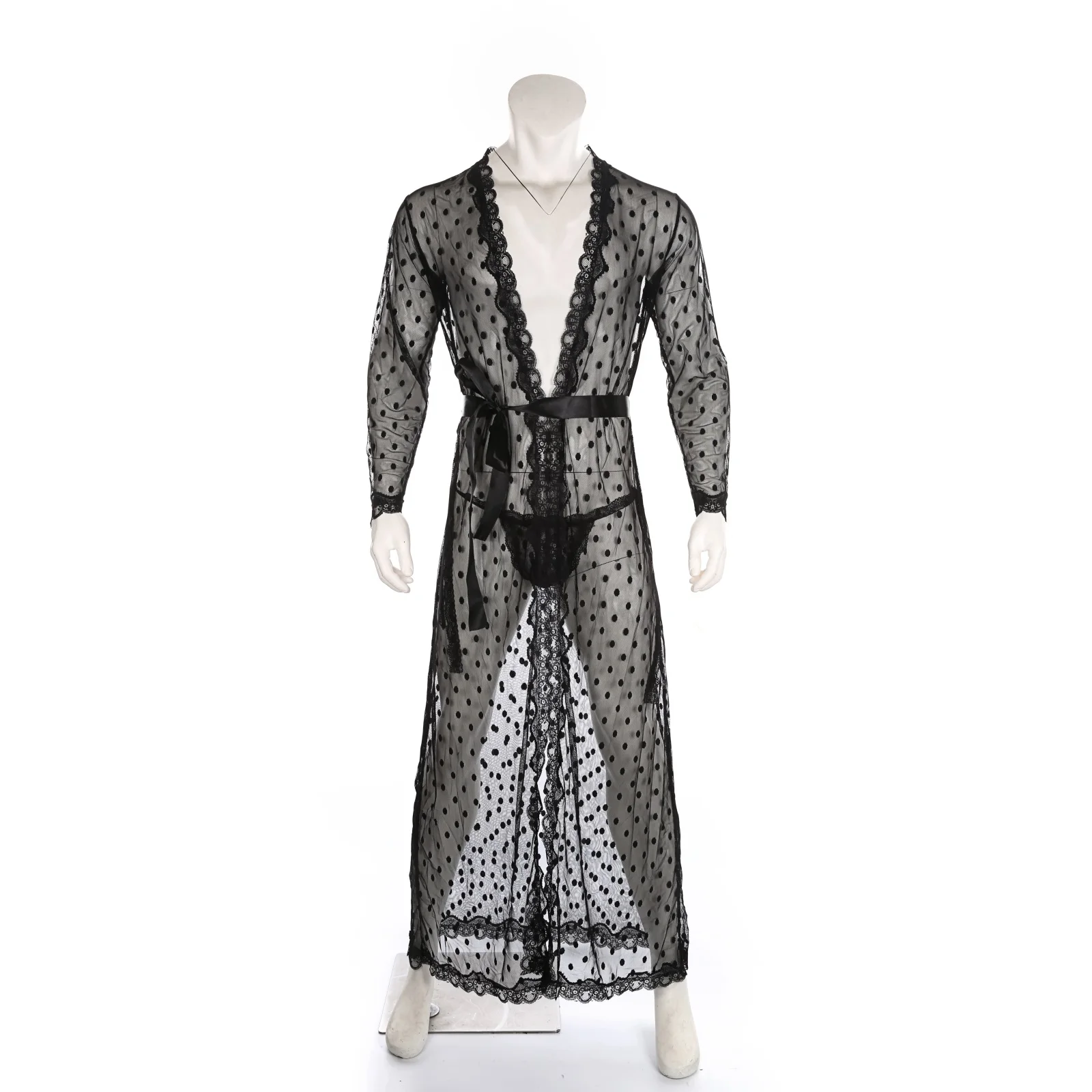 Наименование товара: мужской Халат с длинными рукавами, халат, кимоно, мужская пижама, кружевной халат, ночной халат с бантиком, комплект с ремешками