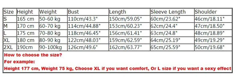2XL | 190 см | 90-100 кг | 126 см/49,6" | 162 см/63,77" | 65 см/25,59" | 50 см/19,68" |