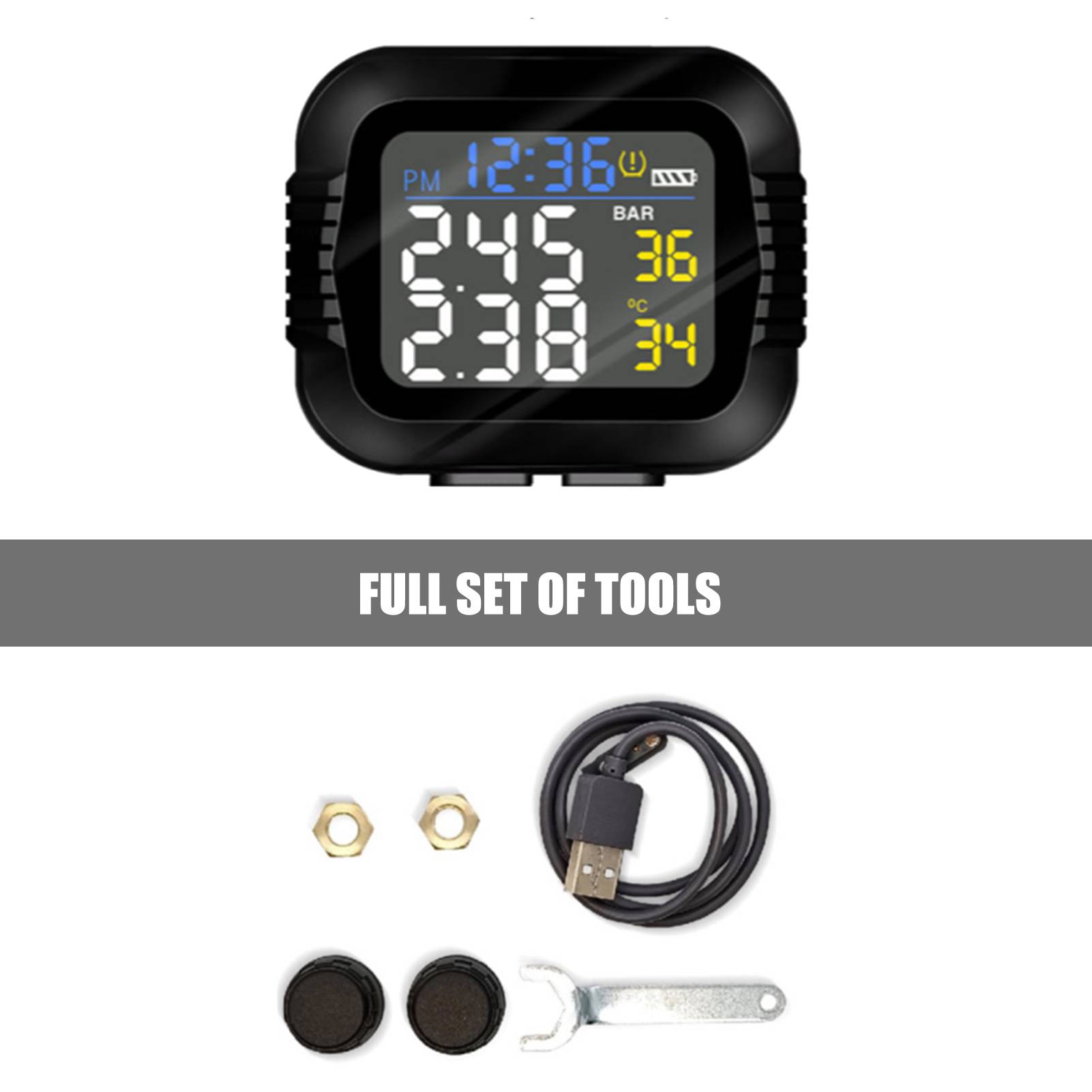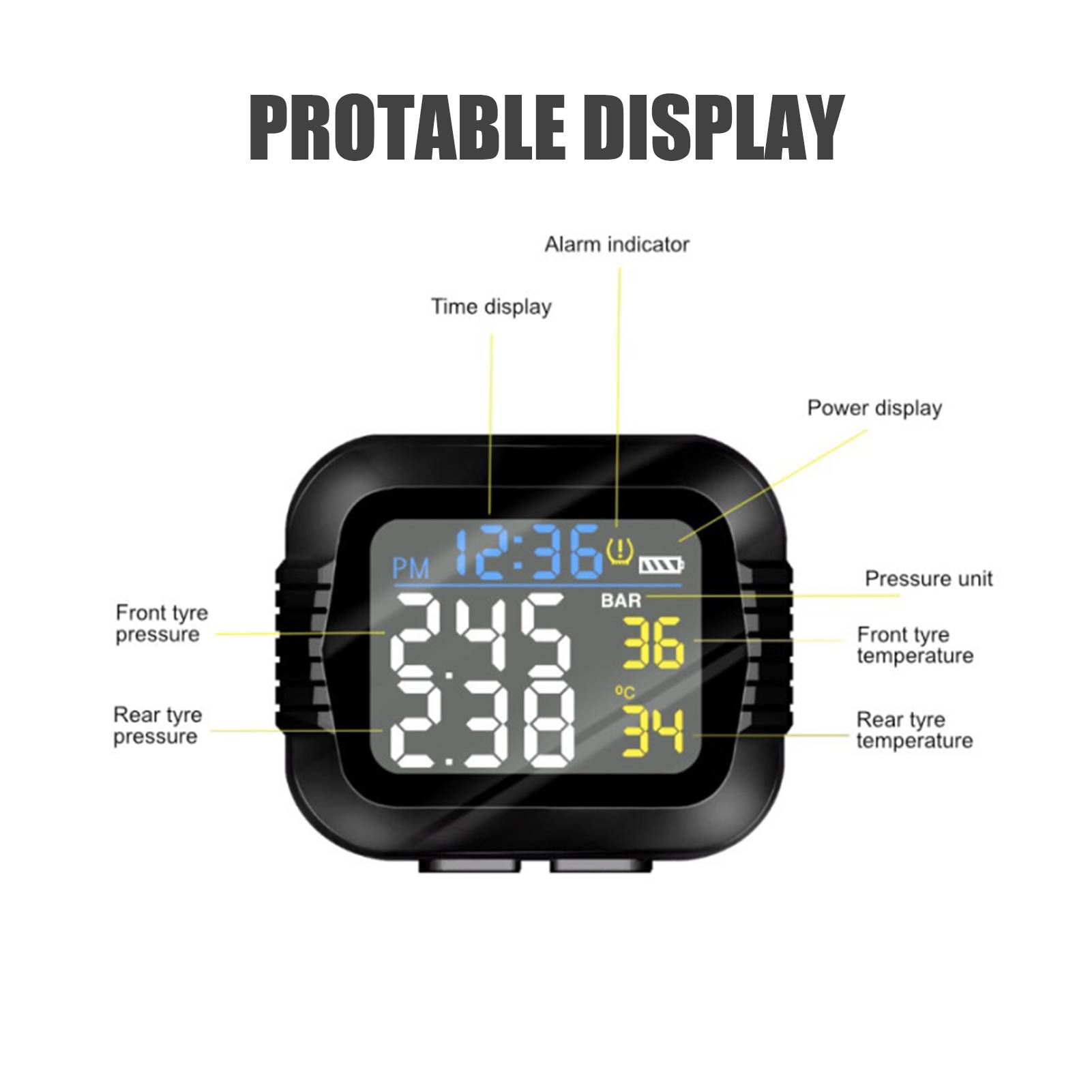 1. ЖК-цифровой дисплей, красивый и компактный. Одновременное отображение времени, заряда батареи, давления и температуры передних и задних колес.
