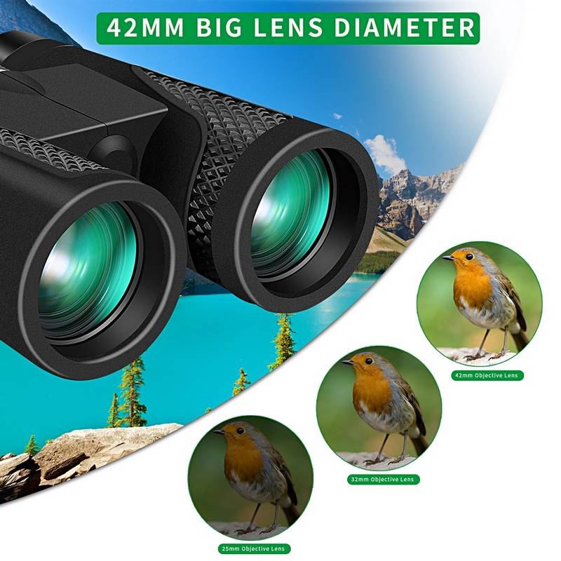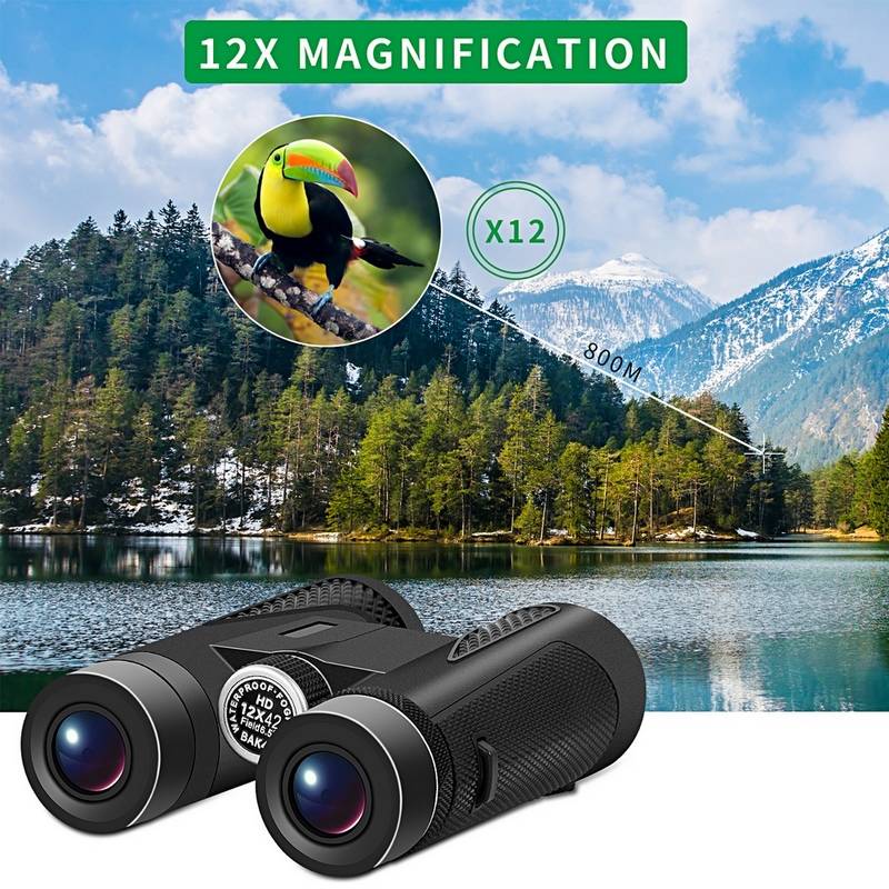 12x42 бинокль для взрослых и детей, компактный охотничий бинокль с четким низким освещением, 18 мм большой окуляр бинокль для наблюдения за птицами, спорта на открытом воздухе и использование BAK4 FMC 16,5 мм супер яркий BAK4 Призма FMC объектив водонепроницаемый