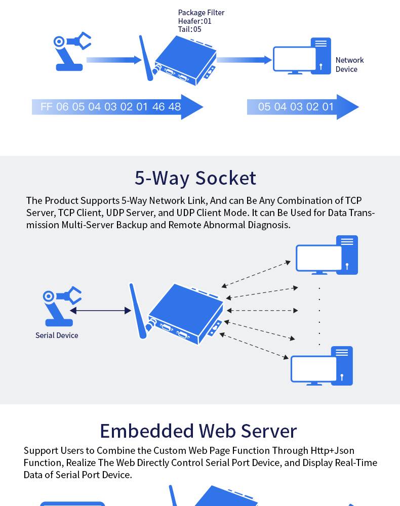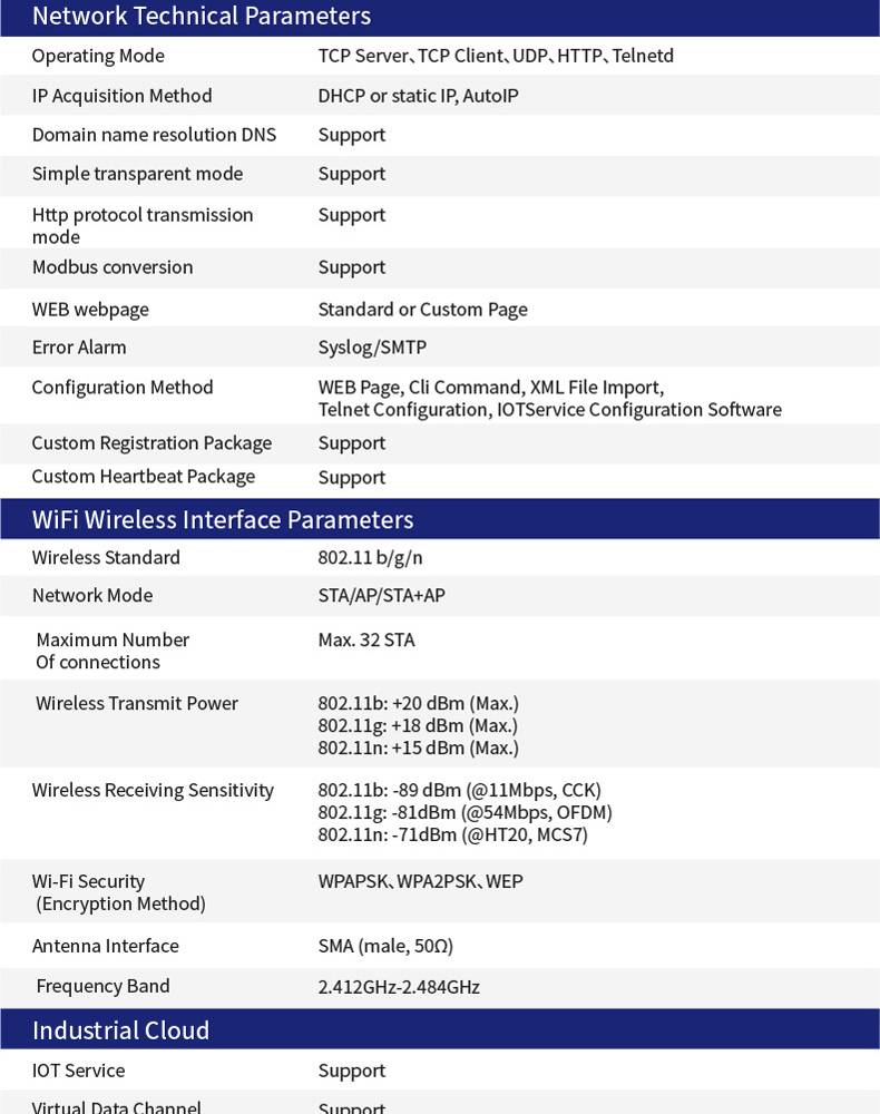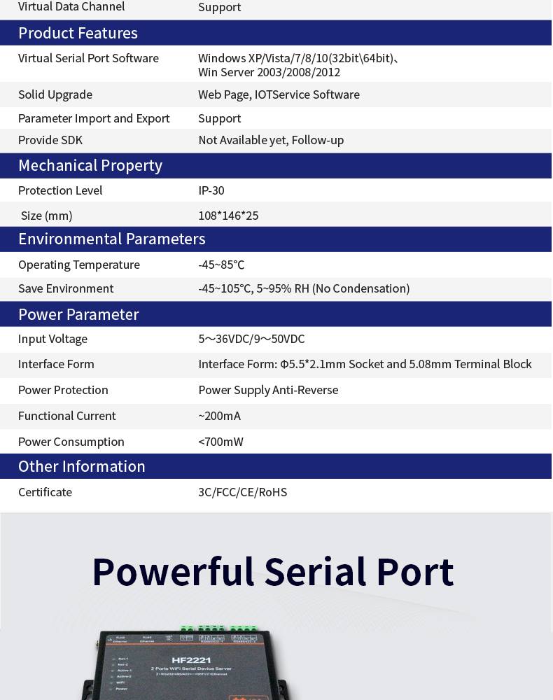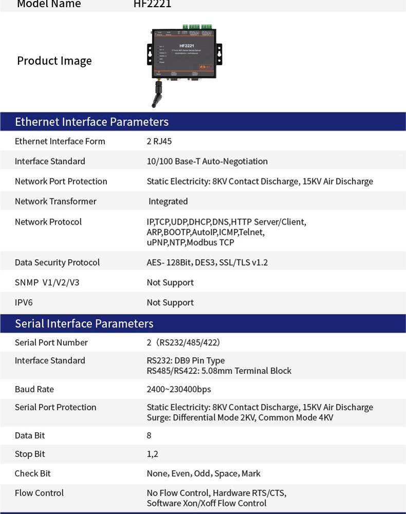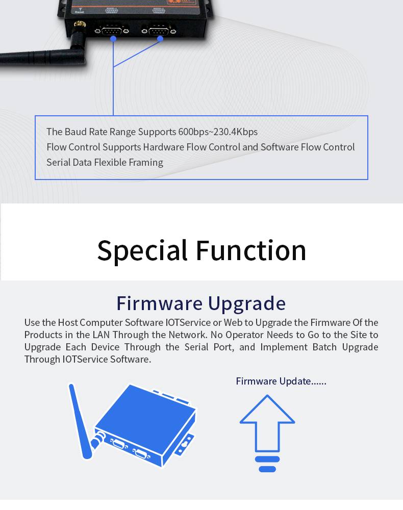 Поддержка 2 канала RS232/RS422/RS485 для преобразования Ethernet/Wi-Fi, последовательная скорость до 230400 bps