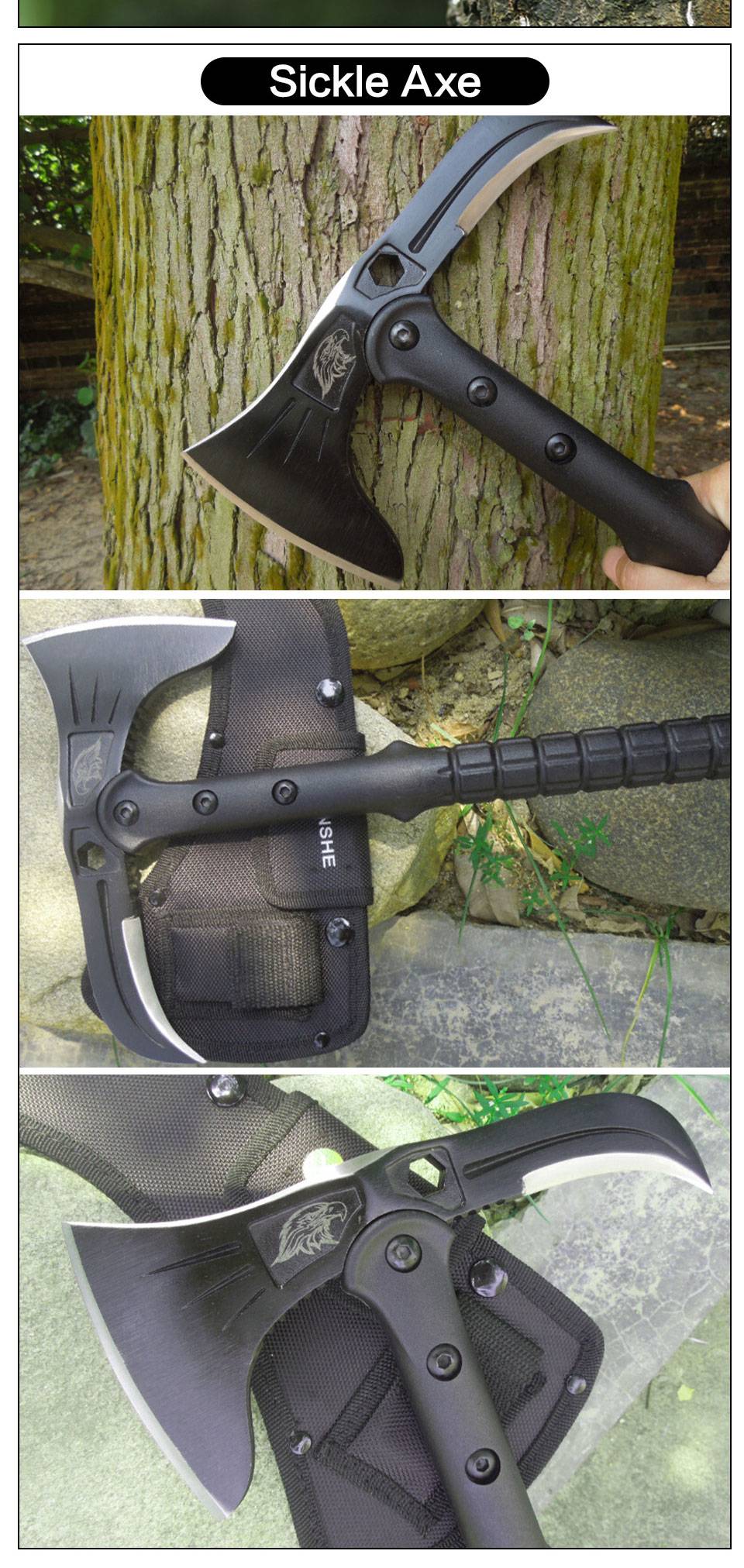 (1) 【размеры 14,5 дюйма (37 см) в целом, длина лезвия 3,9 дюйма (10 см) и вес 19,4 унций (550 г) (2) 【топор с пирсингом Spike】: Этот топор для выживания оснащен топором для резки и шипом для пирсинга. Подходит для расщепления древесины на открытом воздухе, раскалывания палатки, раскалывания ожогов, раскалывания камня (3) [дизайн ручки]: ручка изготовлена из армированного нейлоном стекловолокна, обеспечивает чрезвычайно прочный и удобный захват без скольжения (4) 【открытый походный топор с ножом 】: топор из нержавеющей стали поставляется с легкой прочной нейлоновой оболочкой для защиты лезвия топора (5) 【отличный подарок: Этот Открытый Топор для кемпинга-отличный подарок для ваших друзей, семьи, которые действительно любят походы или охоту. Предложите этот подарок, и они будут впечатлены вашим выбором!