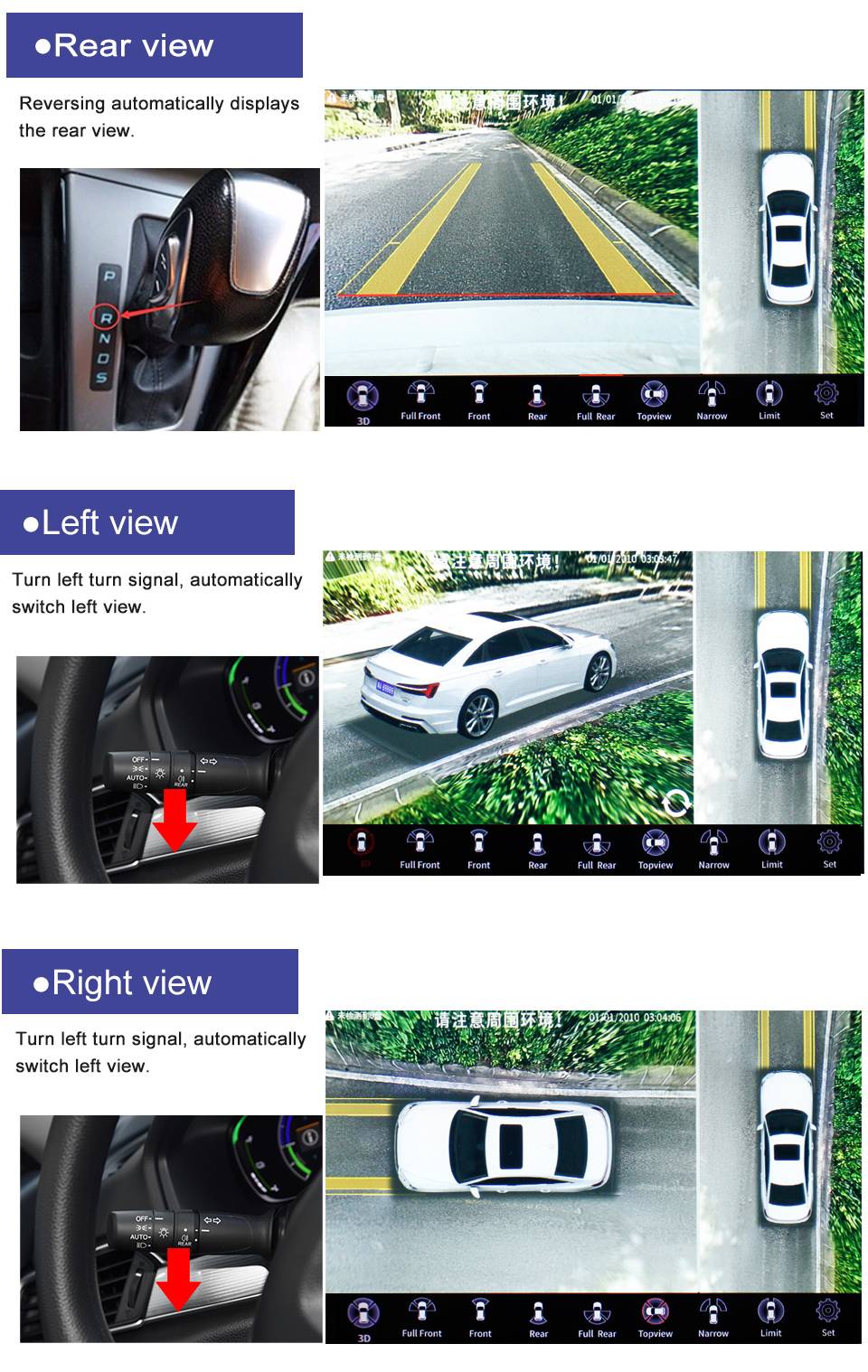 • Поддерживает 2D панораму, 3D панораму, одиночный экран камеры выключается и открывается и другие комбинированные режимы отображения