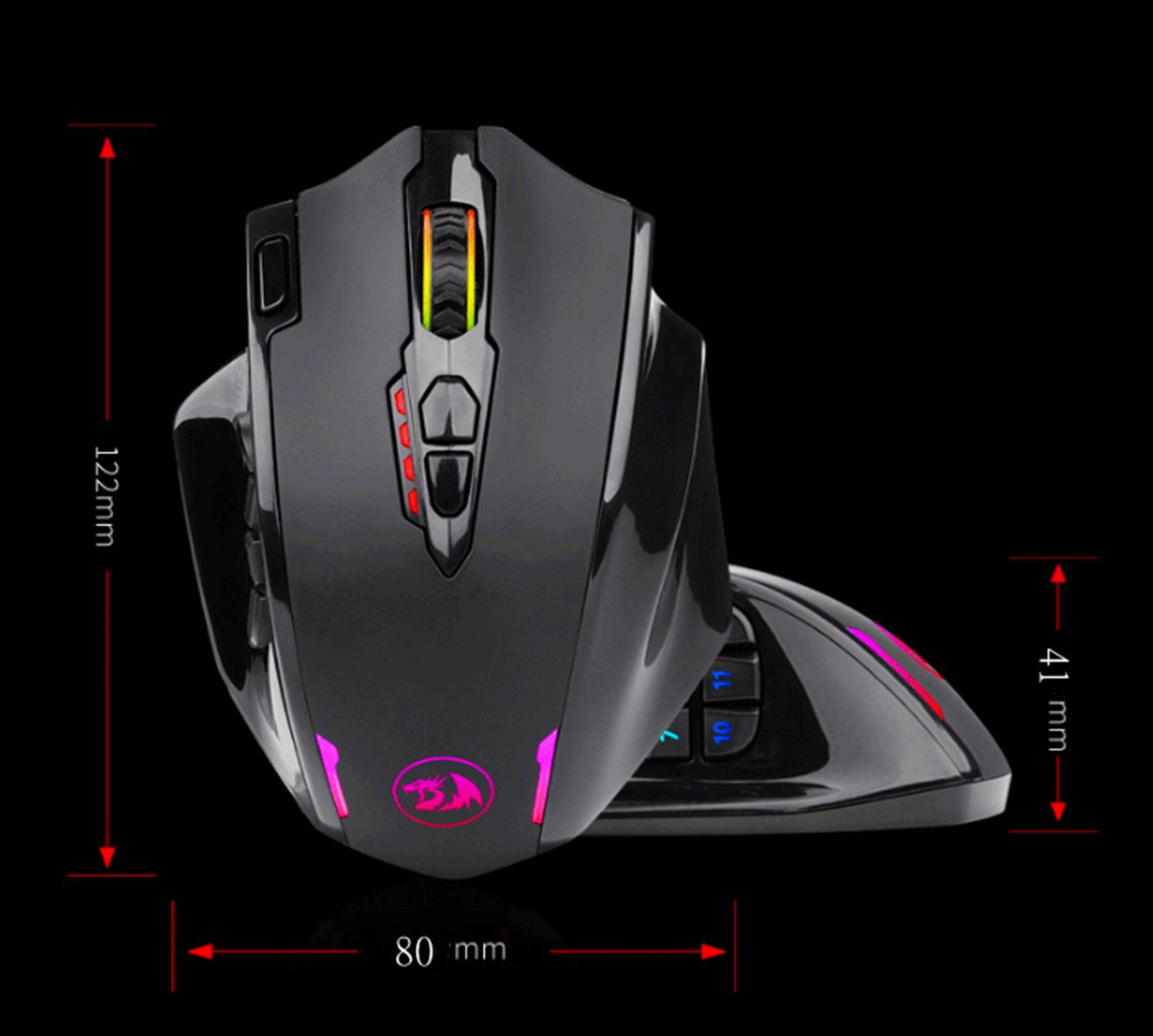 Redragon M913-первая игровая мышь Redragon wireless MMO с 12 программируемыми боковыми кнопками. Наиболее Тактический комбо с беспроводной функцией плюс боковые ярлыки нацелены на более высокий пользовательский опыт.