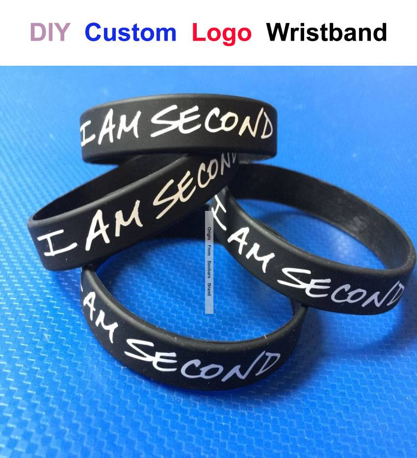 Пользовательские черные браслеты с логотипом, шелкография, рекламная акция, Подарочные ленты для спортивной гонки (я второй), 50 шт./лот