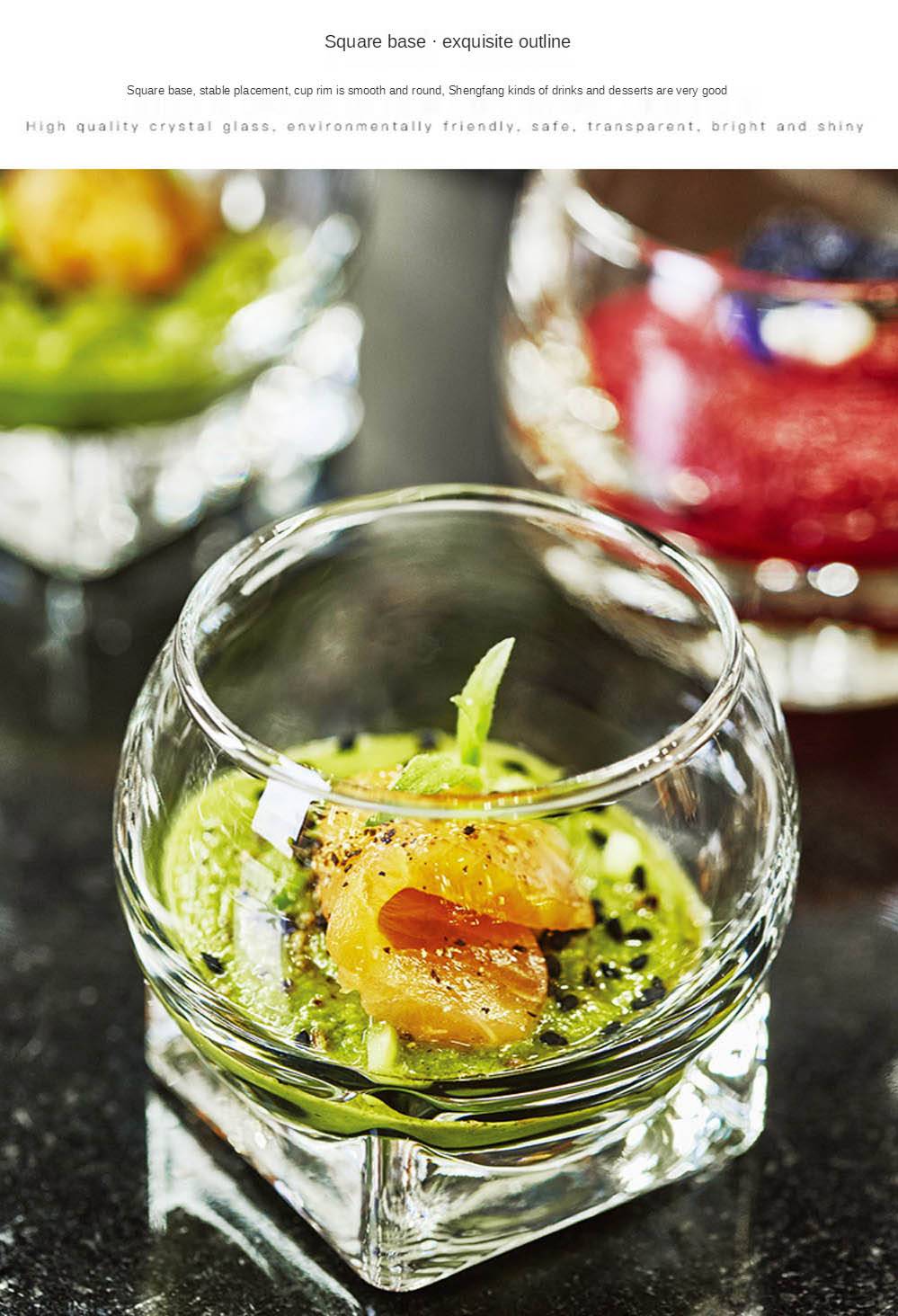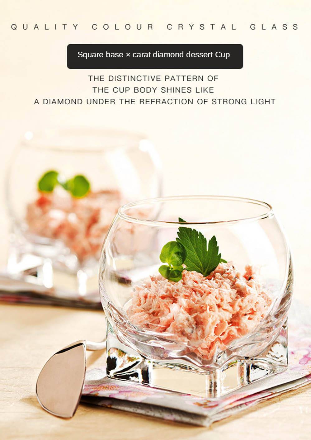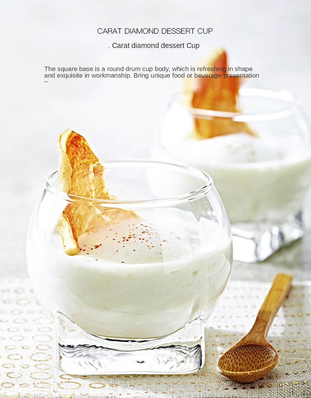 Изготовлено из высококачественного бессвинцового стекла, с четким дизайном, продукт хорошо виден. Креативный десертный стаканчик с бриллиантами в каратах подарит вам изысканные напитки и десерты, обеспечивая частичный контроль. Он очень подходит для небольших частей Парфе, мусса, пудинга, смузи, замороженного йогурта, слякоти, желе, соуса с боковыми блюдами, фруктовых коктейлей, ликеров и порционных напитков. Он очень подходит для ресторанов, баров, вкусов и мероприятий, добавляя элегантности свадебным ливням, свадьбам, детским ливням, дню рождения, взрослым вечеринкам, вечеринкам и праздничным мероприятиям.