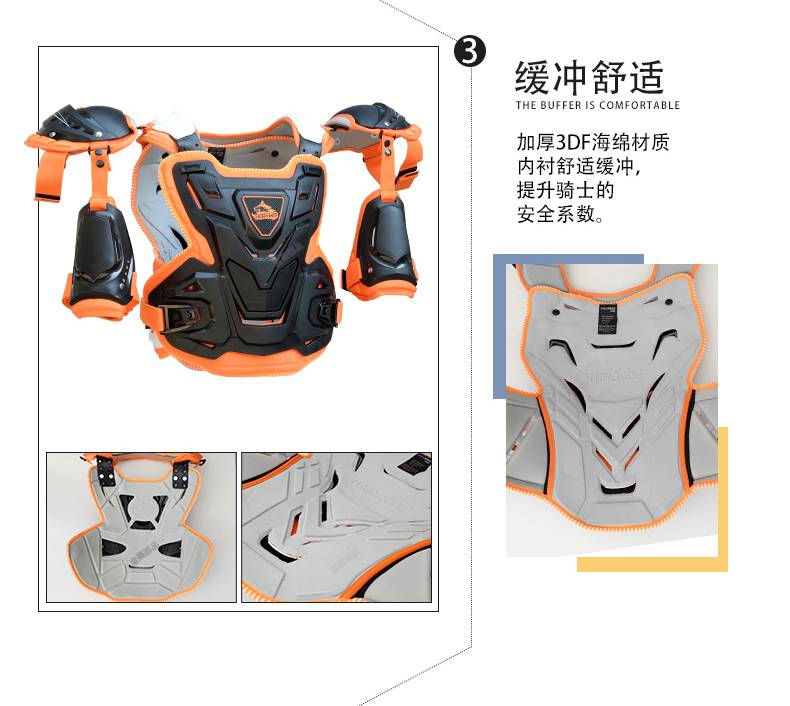Protective Armor Is Made Of High-density Wear-resistant Nylon. Moveable Liner Allows For Easy Cleaning, Multiple Large Vents Of Plastic Shells And Foam Are For Maximum Ventilation, All Of The Advantages Keep You Secure During Riding.