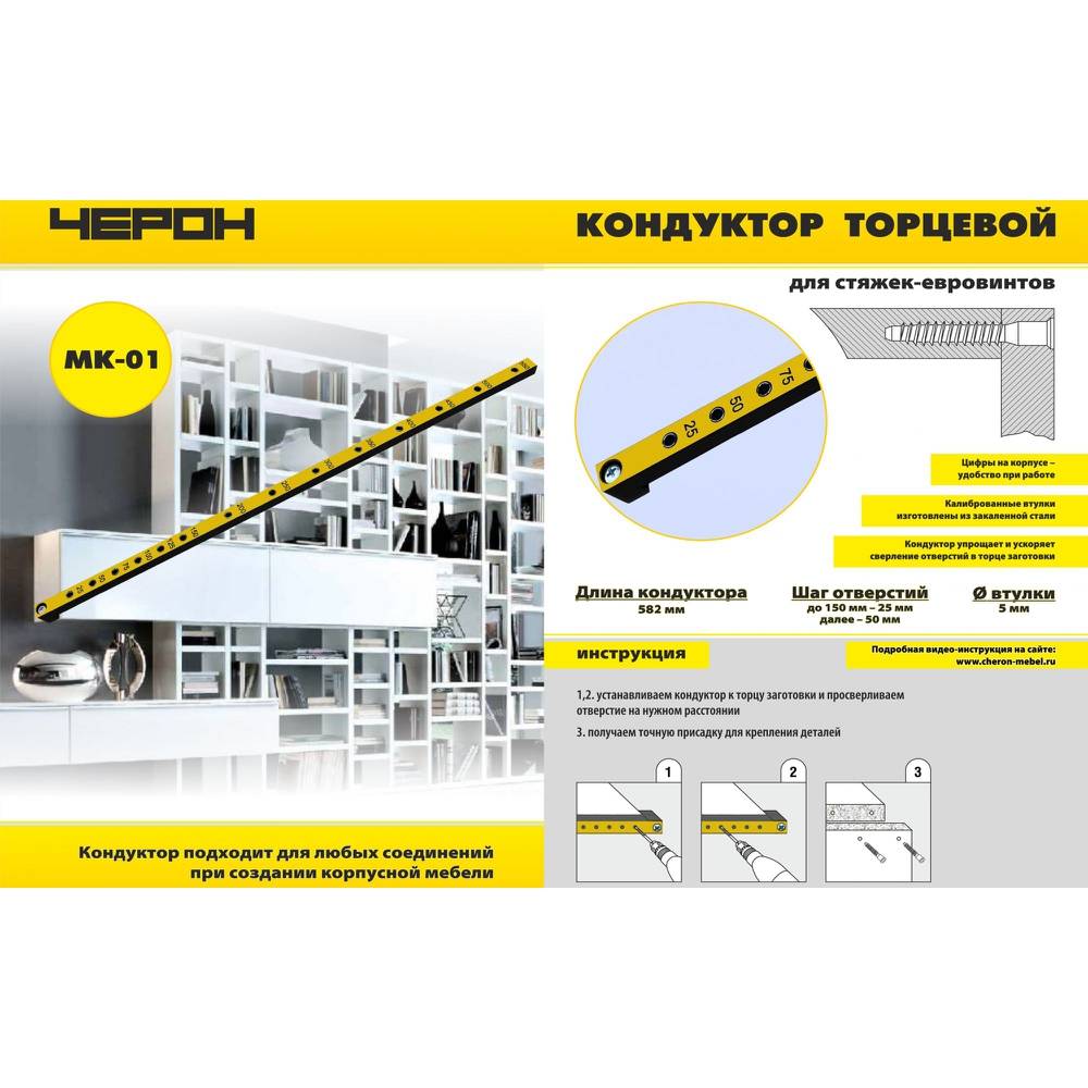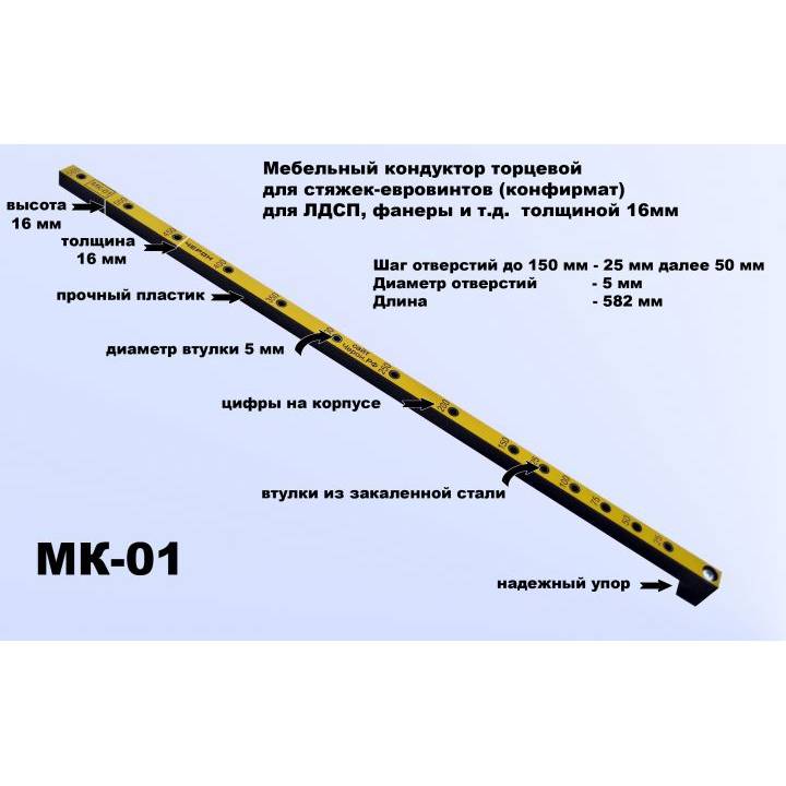 Мебельный кондуктор торцевой шаг 25/50, диаметр втулки 5 мм, под плиту 16 мм.