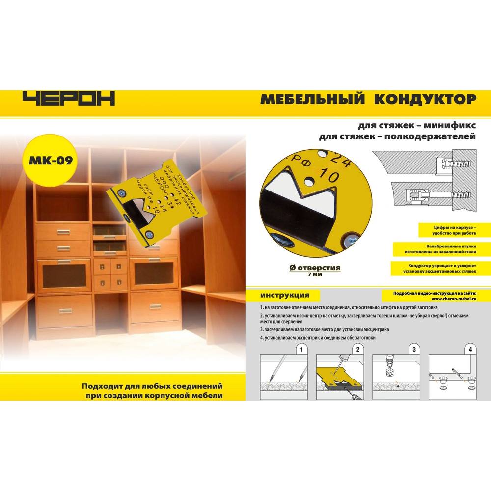 Служит для установки эксцентриковых стяжек (минификс) , стяжек полкодержателей, а так же конических стяжек.