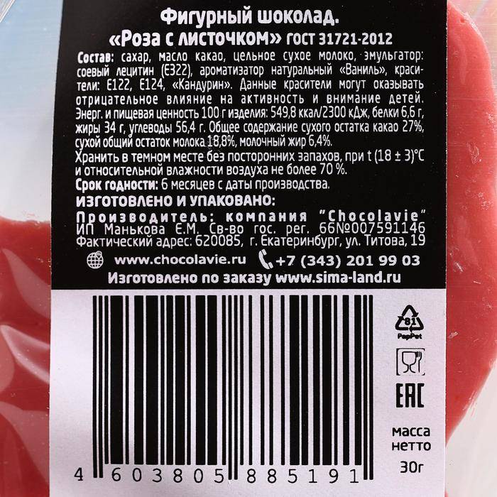 | Вес нетто, г | 30 |