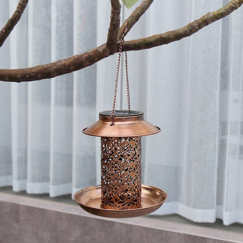 Античный металлический кормушка для птиц наружный подвесной светодиодный светильник на солнечных батареях для газонов держатель для еды для птиц контейнер для украшения сада