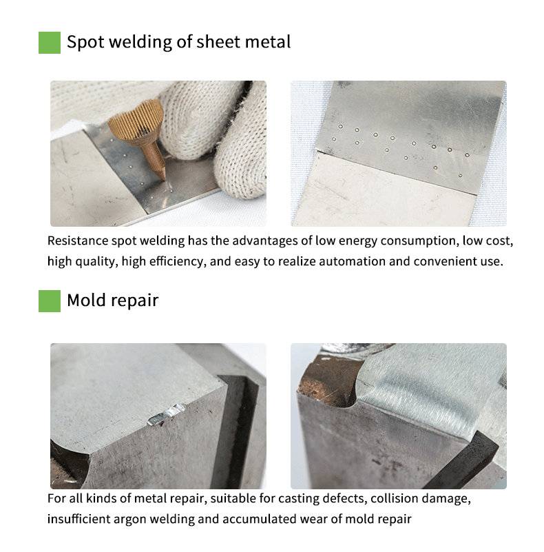 1. Точечная Импульсная Сварка: Тепловой ввод этой функции сварки ремонт очень маленький, сварочный ремонт эффект хороший, и деликатные части могут быть легко отремонтированы. 2. Прецизионная дуговая сварка аргона: Эта функция используется в качестве самостоятельного рабочего блока и может использоваться отдельно. Эта функция может запускать дугу при небольшом токе 1А, с стабильным током и концентрированной огневой мощью.