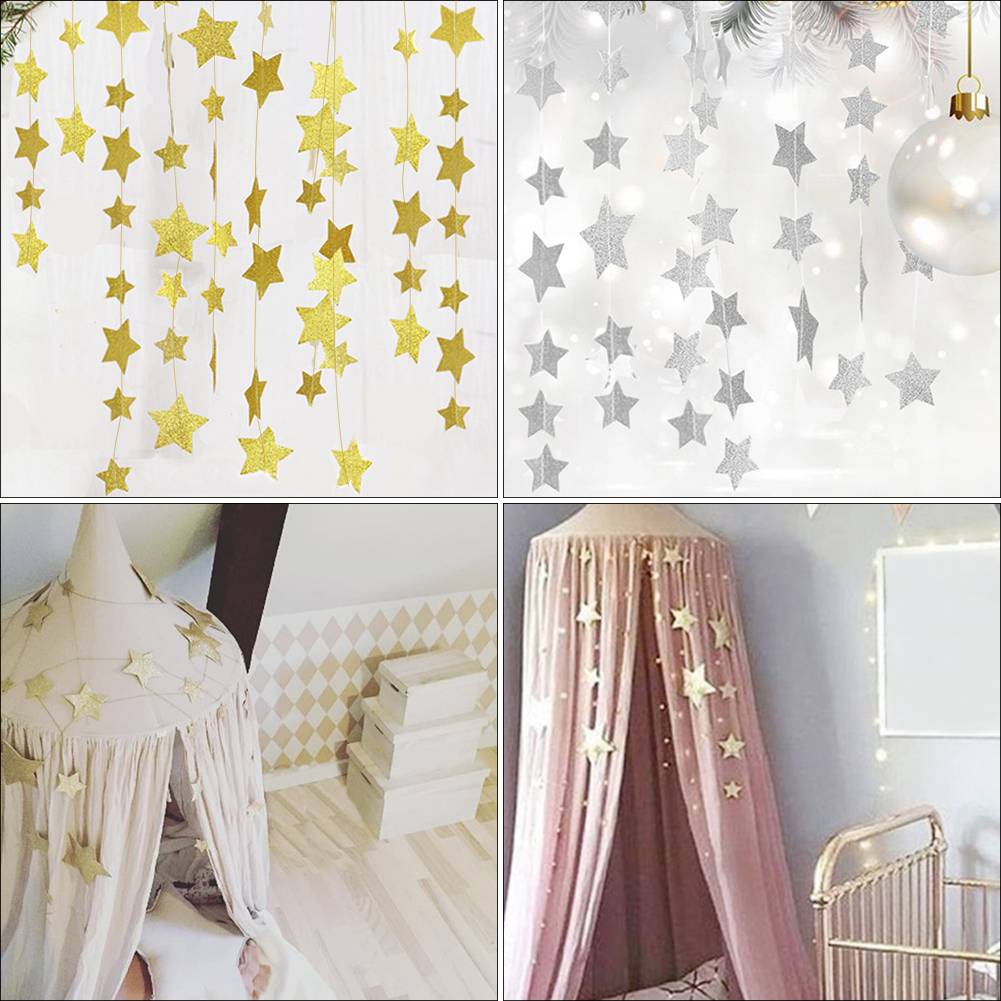 Золотые звезды висячие украшения Сверкающая Звезда гирлянда для вечеринок детские комнаты москитные сетки комнаты украшения на стены