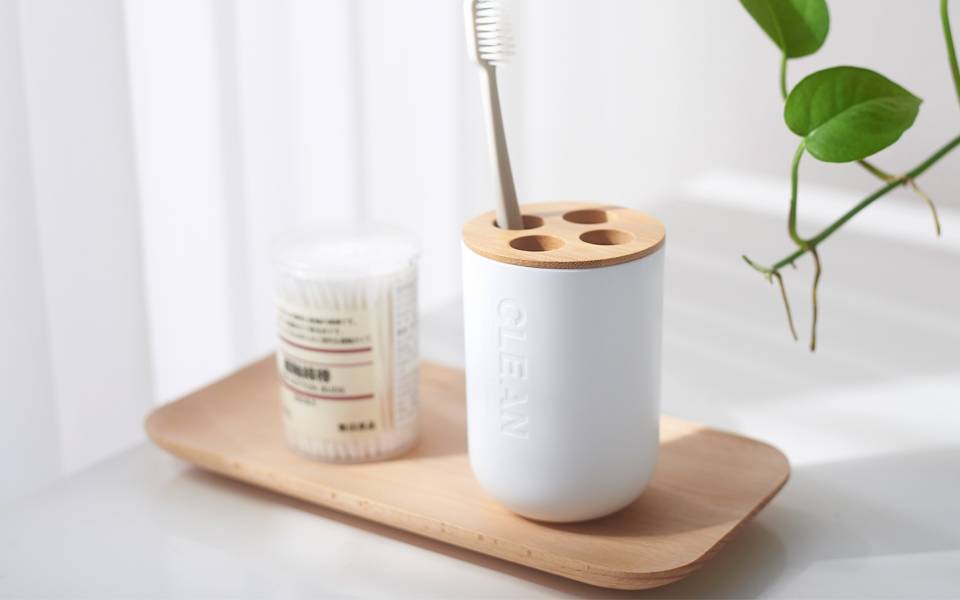 6. Держатель зубной щетки: четыре части дизайна, он может вместить до 4 зубных щеток. Вы можете удалить бамбуковую перегородку и использовать держатель зубной щетки в качестве чашки.