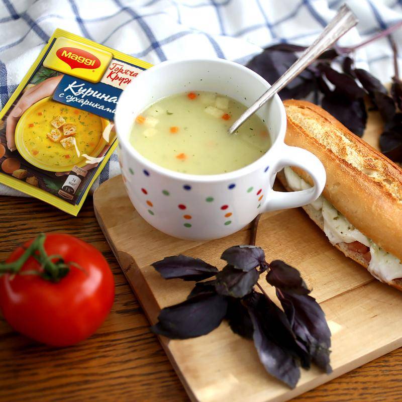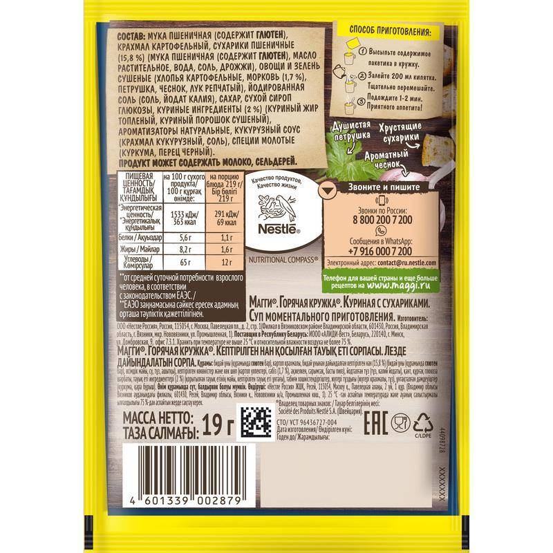 МАГГИ Горячая кружка куриная с сухариками. Суп моментального приготовления, 19 г