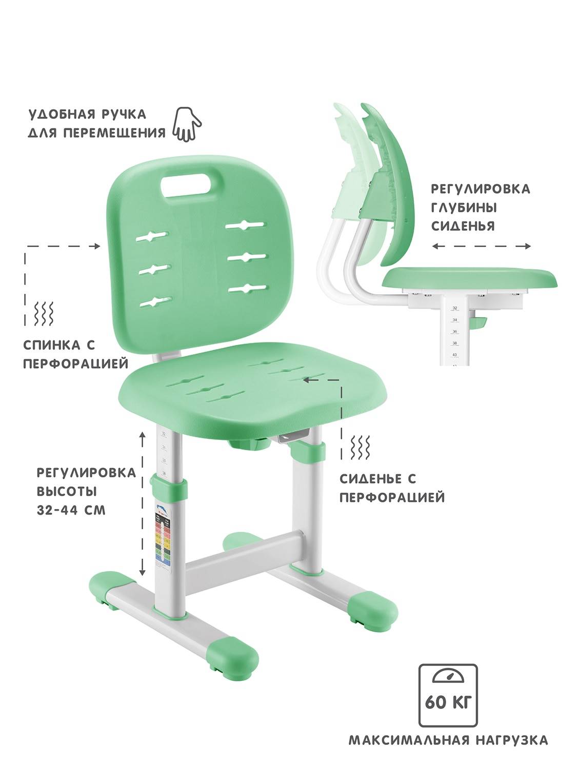 Главное отличие от аналогов -регулировка глубины сиденья. Это обеспечивает максимальное прилегание спины ребенка к спинке стула, помогает сохранять правильную, ровную осанку. Двигая спинку, Вы подбираете глубину правильной посадки ребенка под его рост, чего нет в аналогах.