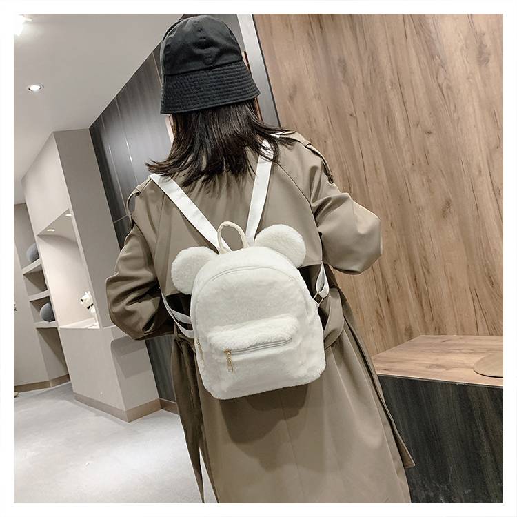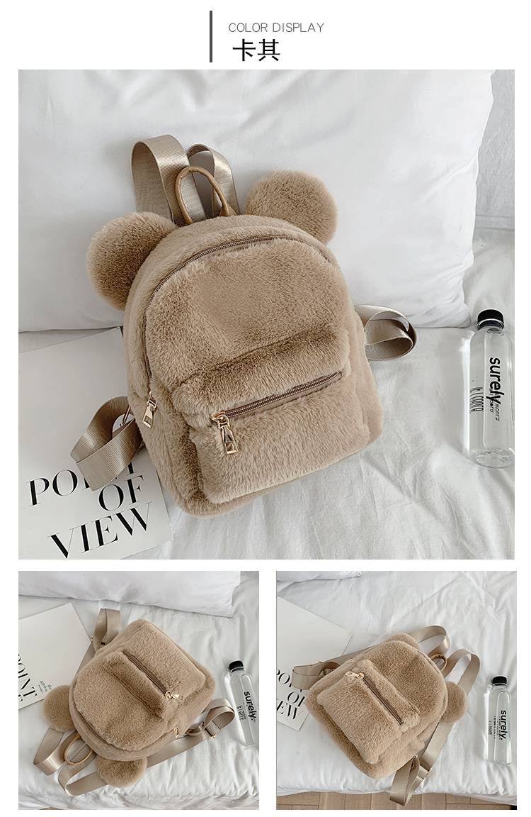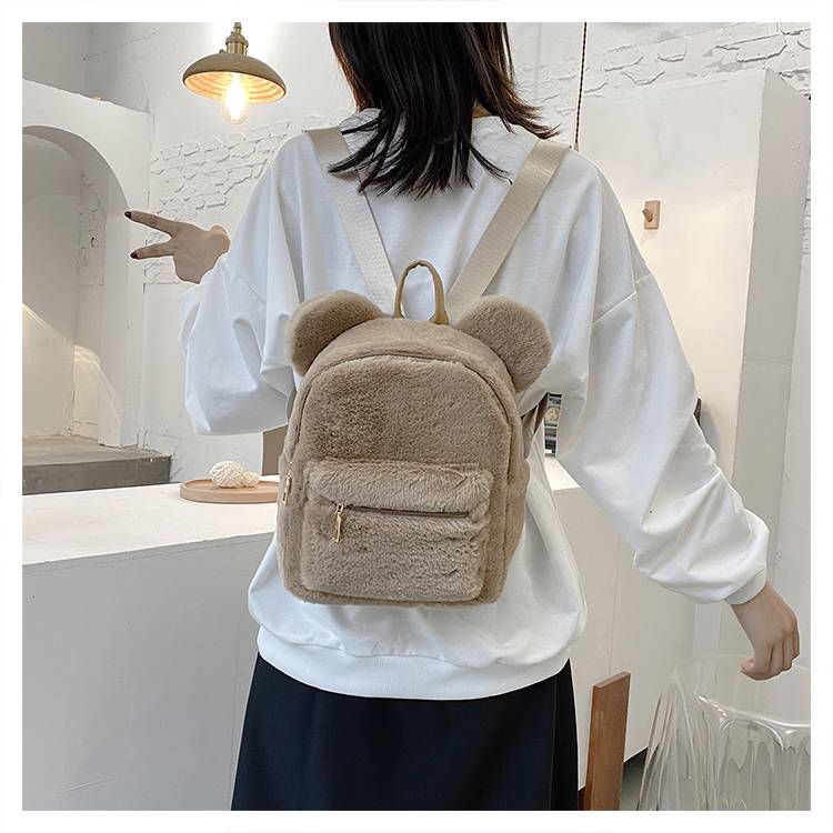 Плюшевый женский рюкзак с медвежьими ушками, сумка на плечи из искусственного меха, милая меховая женская сумка, новая сумка для девочек, 2021 KPOP, мини-рюкзаки для женщин