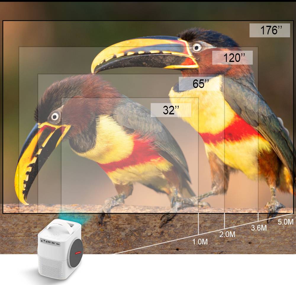 (Подключение к компьютеру через кабель HDMI или кабель VGA, даже ваш проектор установлен на фиксированном расстоянии, вы также можете использовать зум дисплея для регулировки размера проекции (режим USB поддерживает увеличение дисплея при воспроизведении видео или изображений.)