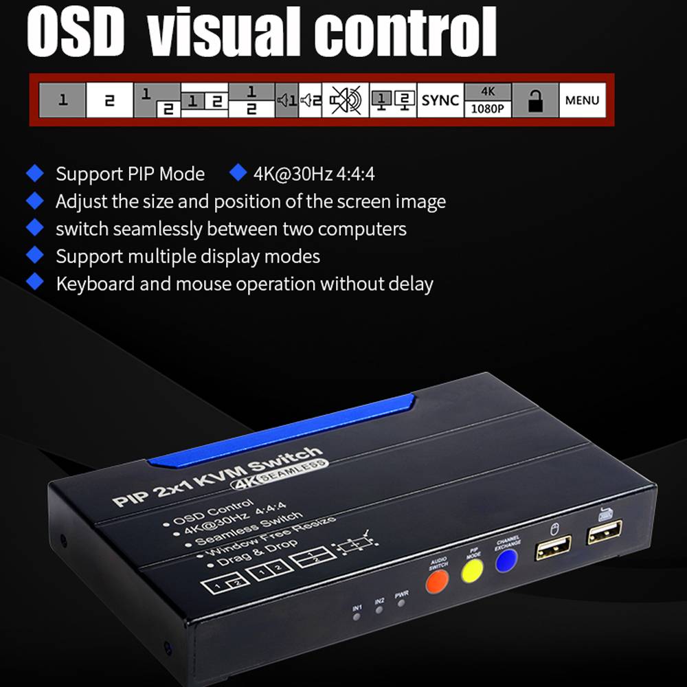 4K 2x1 PIP Multiviewer бесшовный 2x1 HDMI KVM переключатель с аудио экстрактором