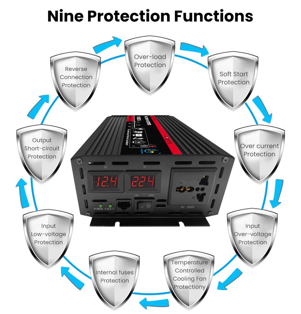 4. Не перегружать бытовые приборы, такие как инверторы с двигателями, водяные насосы, кондиционеры и другие индуктивные нагрузки. Пожалуйста, умножьте номинальную мощность как минимум в 3 раза, и Полученное значение не должно превышать мощность инвертора.