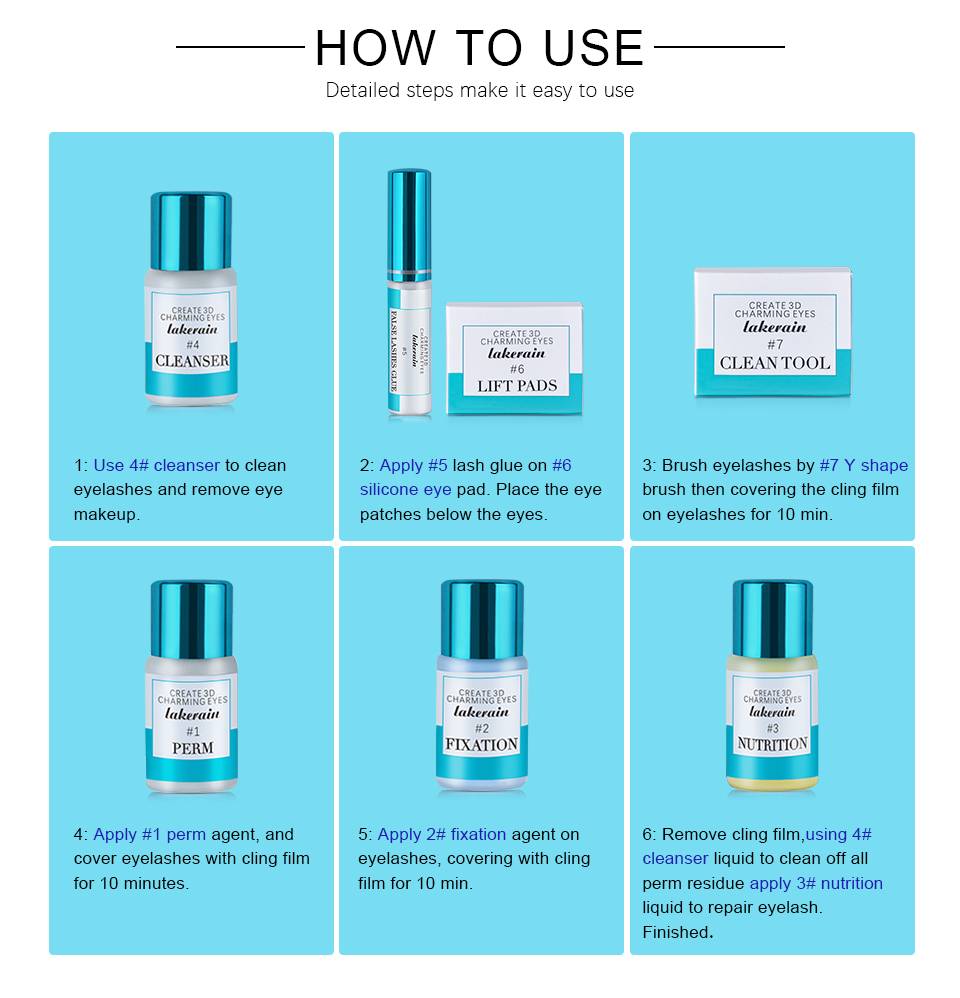 Посылка включает: Набор для подъема ресниц + набор для нанесения оттенка ресниц (черный) Используйте шаги для набора подъема ресниц: Шаг 1: используйте очищающее средство No.4 для удаления жира, пыли и остатков косметики с ваших ресниц. Шаг 2: Наденьте силиконовую подкладку поверх нижнего века. Шаг 3: Нанесите клей для ресниц на ресницы и силиконовую подкладку и подождите 20-35 секунд. Dom не нанесите слишком много клея на накладки, иначе не приклейте! Шаг 4: расчесывайте ресницы с помощью y-образной кисти, а затем закрывайте ресницы пленкой в течение 10-12 минут. Шаг 5: нанесите Перми № 1 на ресницы и накройте ресницы клейкой пленкой еще 10-12 минут. Шаг 6: нанесите фиксирующий номер 2 на ресницы. Накройте их пленкой и подождите 10-12 минут, чтобы зафиксировать ресницы. Шаг 7: нанесите очиститель № 4 на ресницы и удалите клей с ресниц. Шаг 8: Используйте питательный лосьон № 3, чтобы питать ваши ресницы. Используйте шаги для набора тентов ресниц: 1. Нанесите тонкий слой крема для защиты кожи вокруг бровей. 2. Смешайте красящий крем с активирующим лосьоном (соотношение смешивания 1:1) 3. Тщательно перемешивайте, пока консистенция не будет однородной и гладкой. 4. Используйте сразу после его подготовки. Не хранить 5. Нанесите смесь на брови шпателем 6. Смол с водой через 25-30 минут