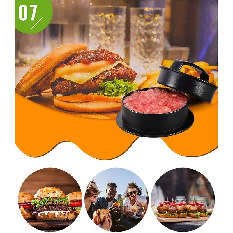 3 в 1 пресс для бургеров: наш пресс для бургеров имеет 3 части для различных функций, нижний режим может сделать большой набитый пирог, средний режим может сделать сэндвич-бургер, сверху можно изготовить небольшую набивку. 3-в-1 для бургеров, какие-либо гамбургер, который вам нравится.