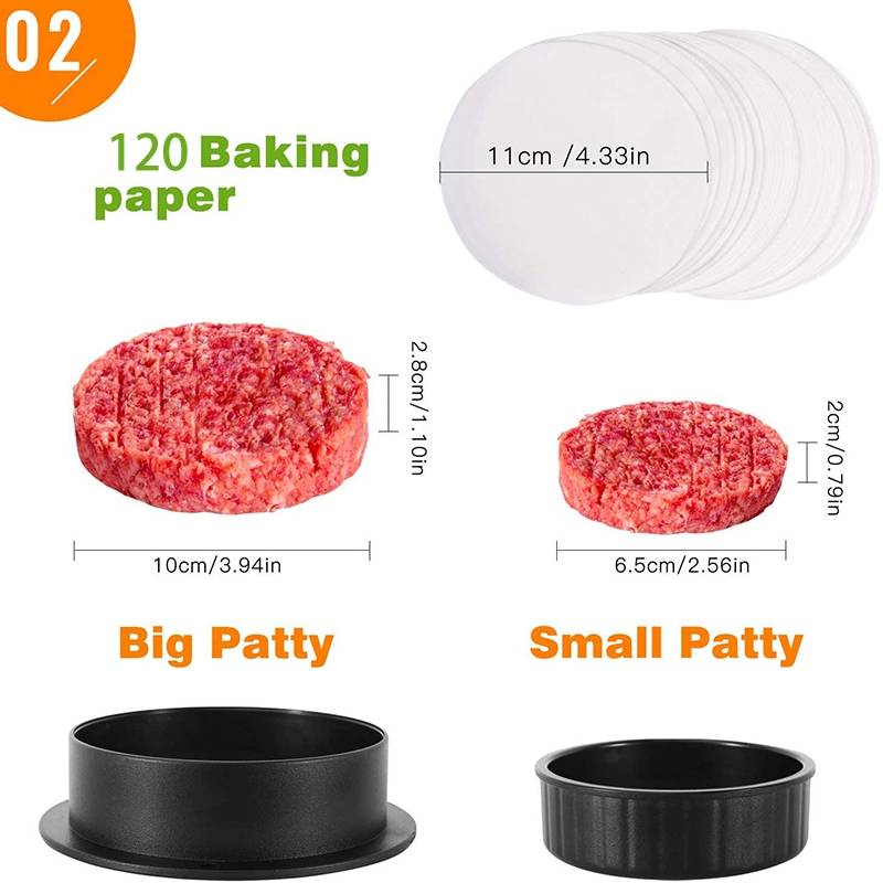 120 шт. бумага для восковой пасты: посылка включает в себя 120 шт. Бесплатная бумага для бургеров, может предотвратить прилипание готового бургера друг к другу и сделать ваши Замороженные бургеры легко отделяться.