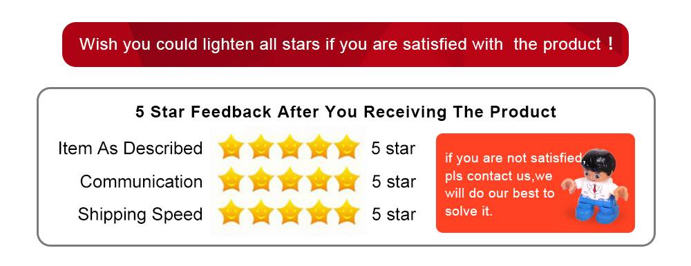1. В том случае, если вы удовлетворены нашими продуктами и услугами, пожалуйста, оставьте 5-звездочный положительный отзывы, а также от покупателей, спасибо за вашу покупку.