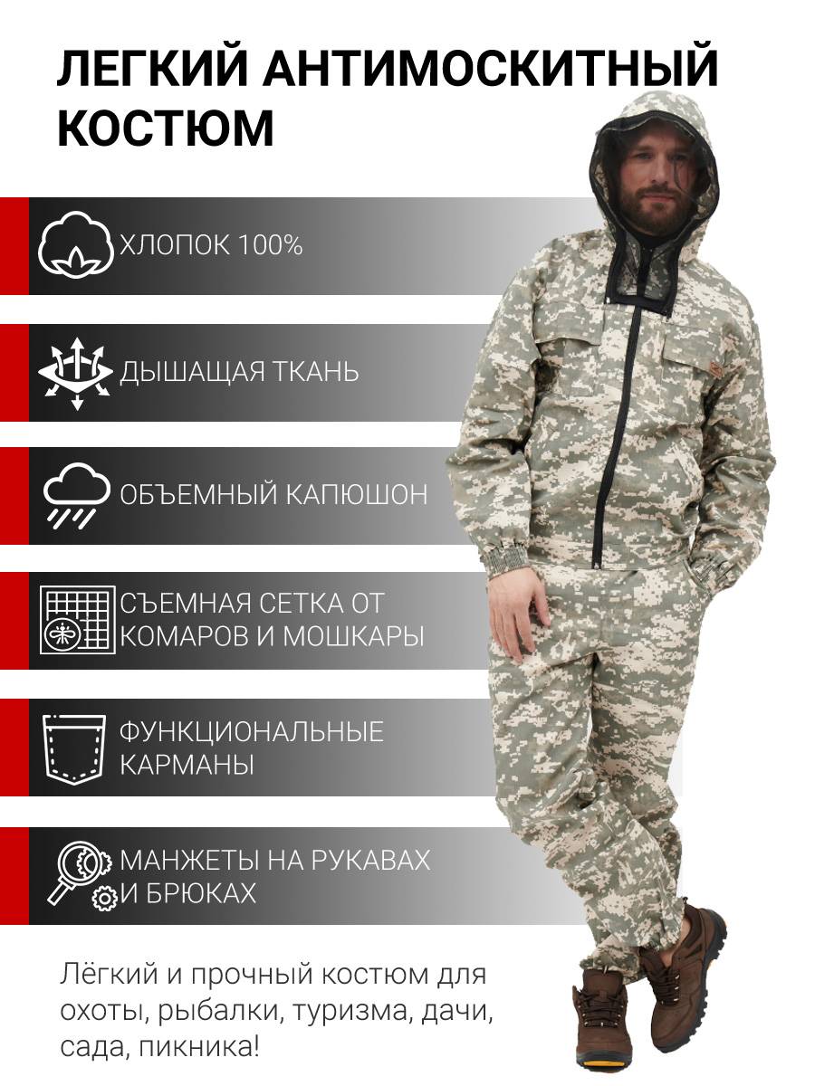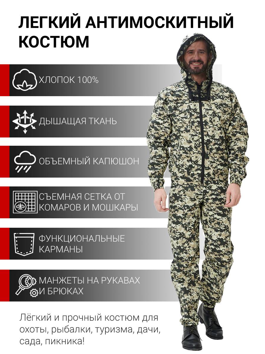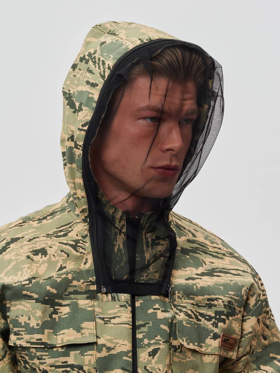 Костюм KATRAN ДОН – прекрасно подойдет для всех любителей охоты, рыбалки и просто активного отдыха. Костюм состоит из куртки и брюк. На куртке расположено 4 функциональных кармана, два прорезных кармана в зоне талии и 2 накладных на груди. Также на костюме предусмотрен объёмный капюшон с атимоскитной сеткой, которую вы можете без проблем отстегнуть. По низу куртки и на манжетах предусмотрена широкая резинка для лучшего прилегания костюма.