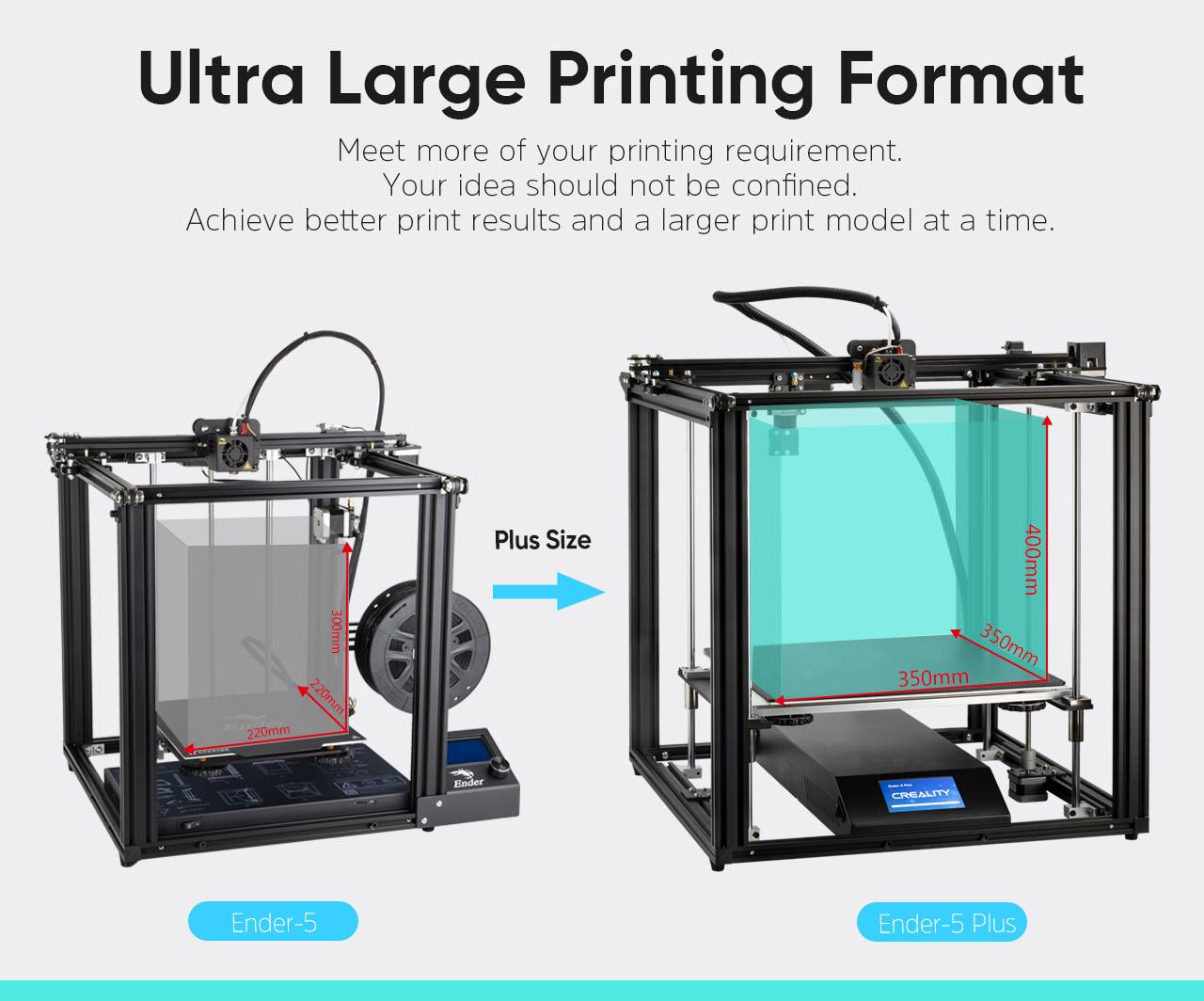 【Ультра большой формат печати: 350x350x400мм. Больше ваших требований к печати. Ваша идея не должна быть ограничена. Добиться лучших результатов печати и более крупной модели печати одновременно.