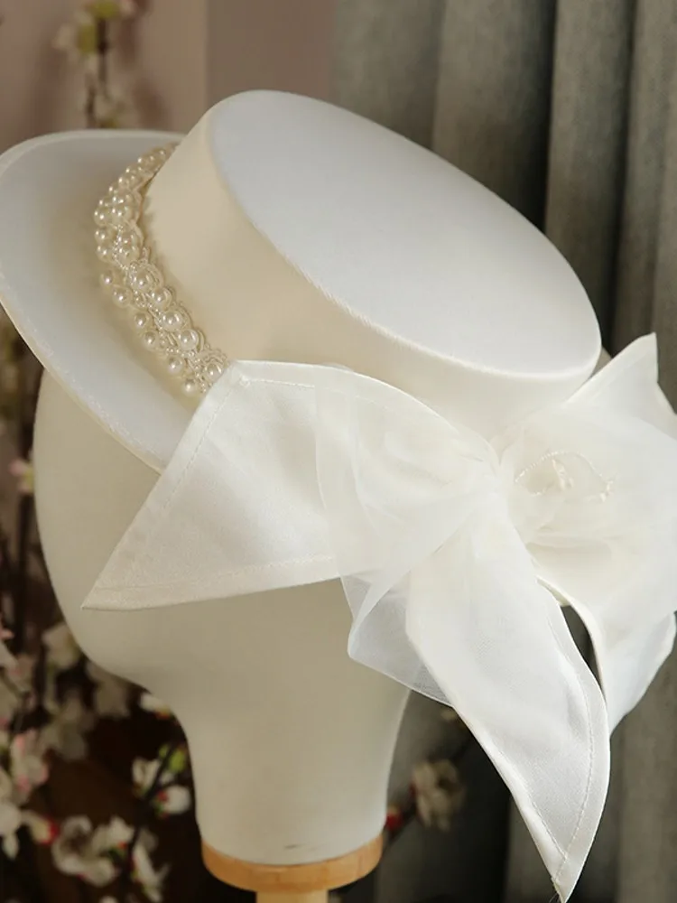 Элегантные винтажные Свадебные шляпы с жемчугом и бантом из органзы, свадебный головной убор цвета слоновой кости, головные уборы для вечеринки, аксессуары для невесты YSAN1097