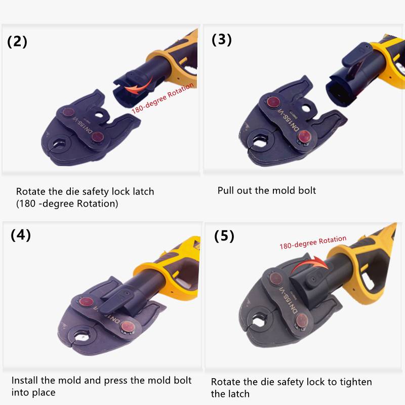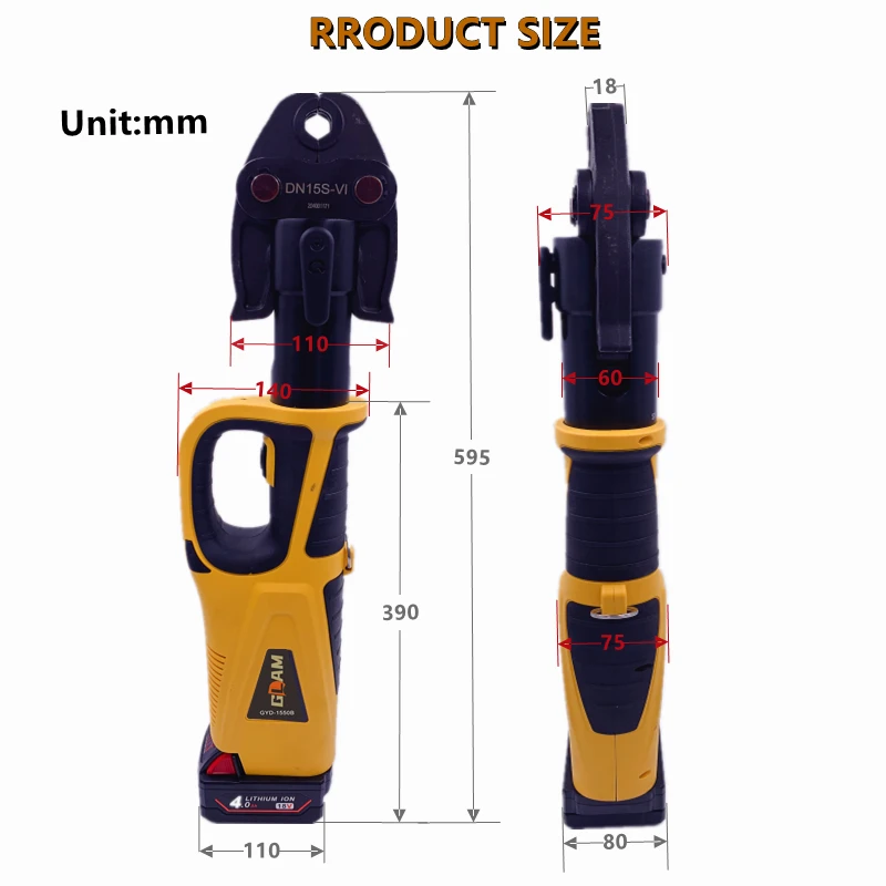 Нажимной инструмент на батарейках GYD-1550B стандартного соответствия: 1 инструмент + 2 аккумулятора + 1 зарядное устройство и 1 набор штампов