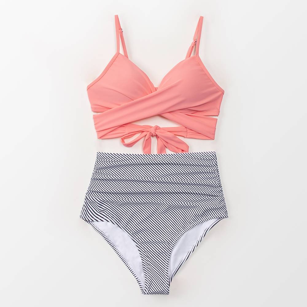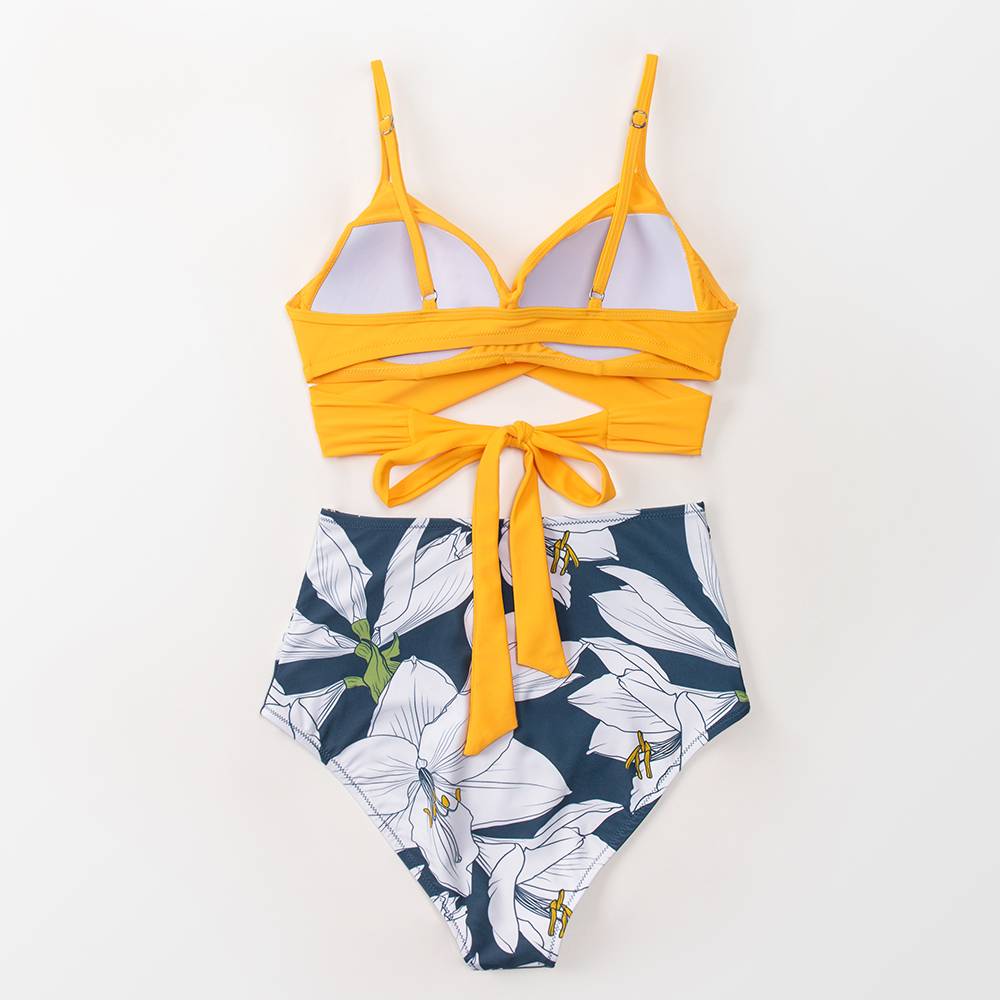 Платье-бикини с высокой талией и цветочным принтом в нашу летнюю мечту желтого цвета. Верх бикини имеет регулируемую обертку вокруг дизайна с мягкими чашечками для идеальной посадки. Купальник бикини с рюшами и высокой талией, Подчеркивающий фигуру.