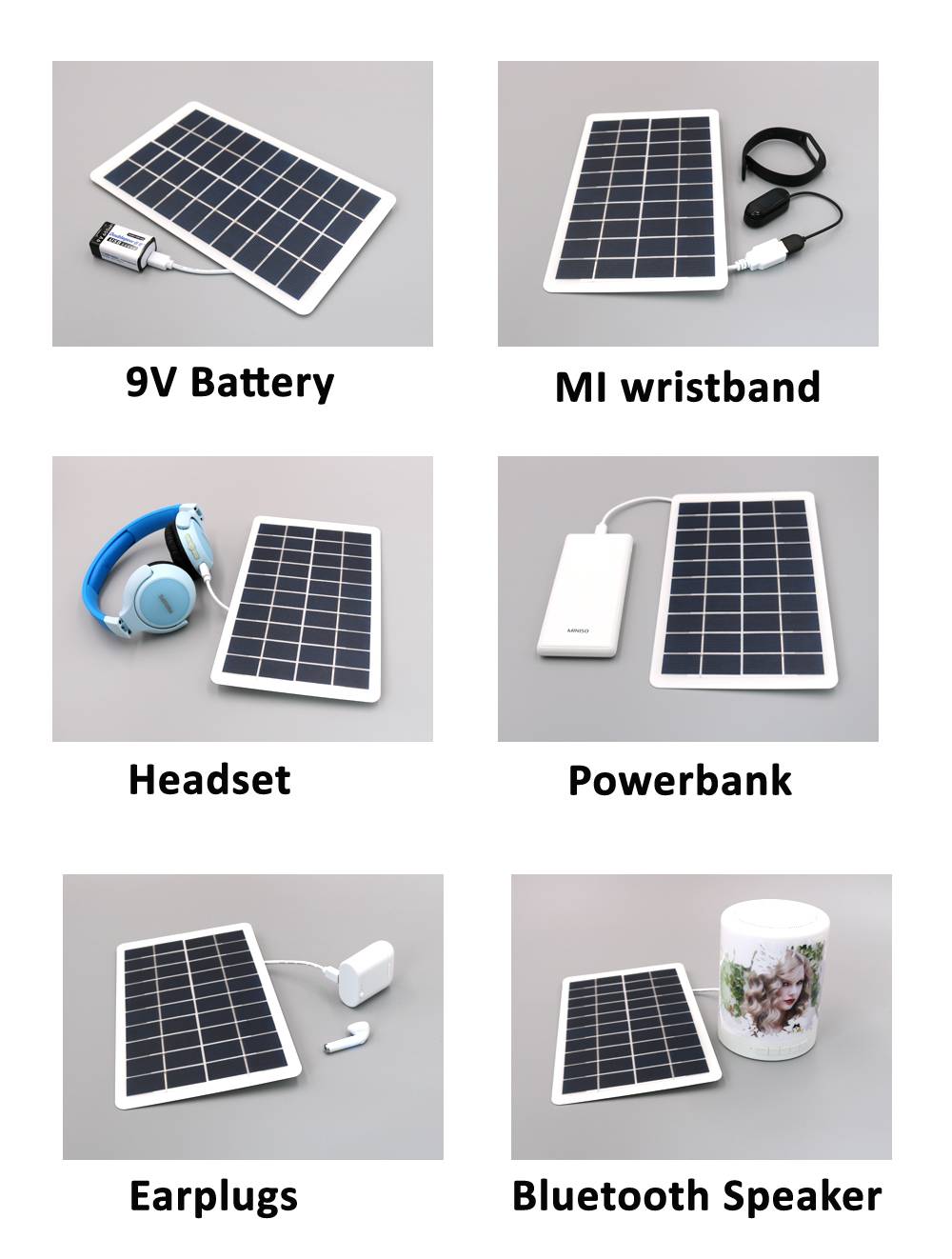 Солнечные панели на 5 в используется для наружной аварийной зарядки, а солнечные панели высокой мощности можно использовать вместо адаптеров переменного тока. Этот продукт можно использовать в динамиках Bluetooth, автомобильных вентиляторах, берушах Bluetooth, блоках питания, перезаряжаемых фонариках и т. д. Только если можно использовать зарядный порт 5 В, его можно заменить солнечной панелью 5 В.