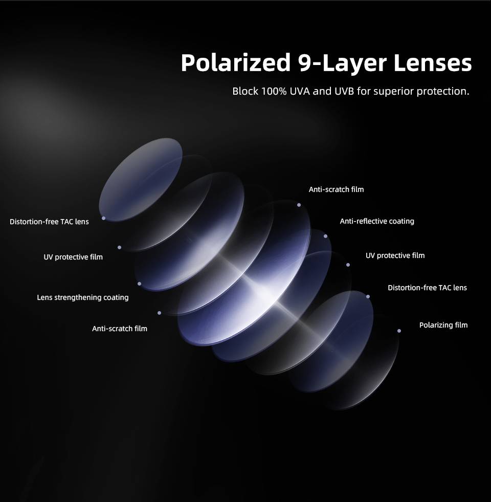 Высококачественные линзы блокируют 100% UVA и UVB для превосходной защиты и защищают ваши глаза от суровых солнечных лучей, которые могут вызвать катаракту, дегенерацию макуляров, рак и нежелательные морщины. FDA совместимый