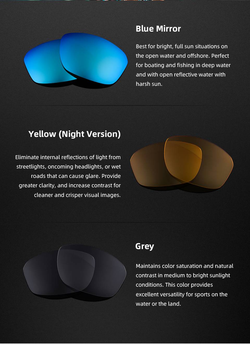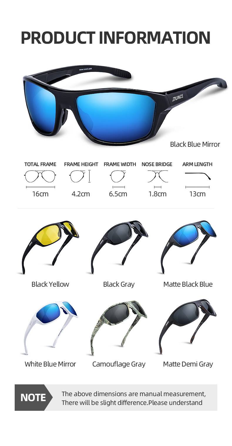 Спортивные оправы в стиле обертывания идеально подходят для вашего лица, обеспечивают огромное количество защитного покрытия и стильную привлекательность; мягкие носоупоры и нескользящие заушники создают контурную точку контакта и обеспечивают индивидуальную подгонку для комфорта на весь день даже в грубой воде; более широкие дужки помогают блокировать ветер и боковые блики