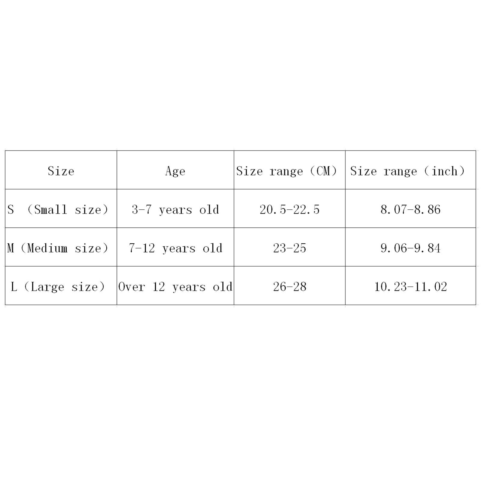 3. 3 размеров, настраиваемый: S-20,5-22,5 см/8,07-8.86in, подходит для От 3 до 7 лет, M - 23-25 см/9,06-9.84in, подходит для От 7 до 12 лет, L - 26-28 см/10,24-11,02 дюйма, подходит для детей в возрасте 12 лет и старше. Пожалуйста, не забудьте отрегулировать длину ботинка перед ношением.