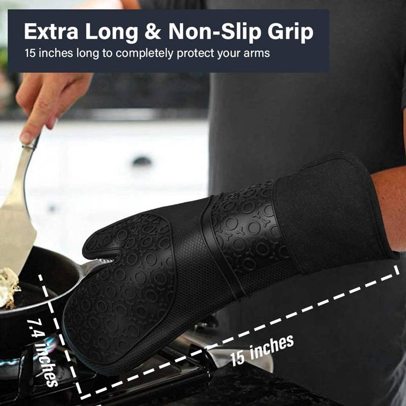 Удобные и супердлинные, легко моются-внутренние силиконовые перчатки духовки на подкладке из мягкого стеганого хлопка, дарящие вам превосходный комфорт! Имея Размер 15 дюймов (около 38,1 см) в длину, перчатки для духовки также могут защитить ваши запястья и предплечья, даже если Руки согнуты. В отличие от других хлопковых перчаток, наши силиконовые перчатки не испачкают, не слепят, не порвутся и не впитывают запахи. Перчатки можно легко почистить просто полосканием с мылом.