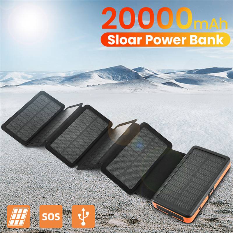 Складной внешний аккумулятор на солнечной батарее 20000 мАч, водонепроницаемый Внешний аккумулятор со светодиодным фонариком, двойная USB солнечная панель, зарядное устройство для Xiaomi iPhone 12 11