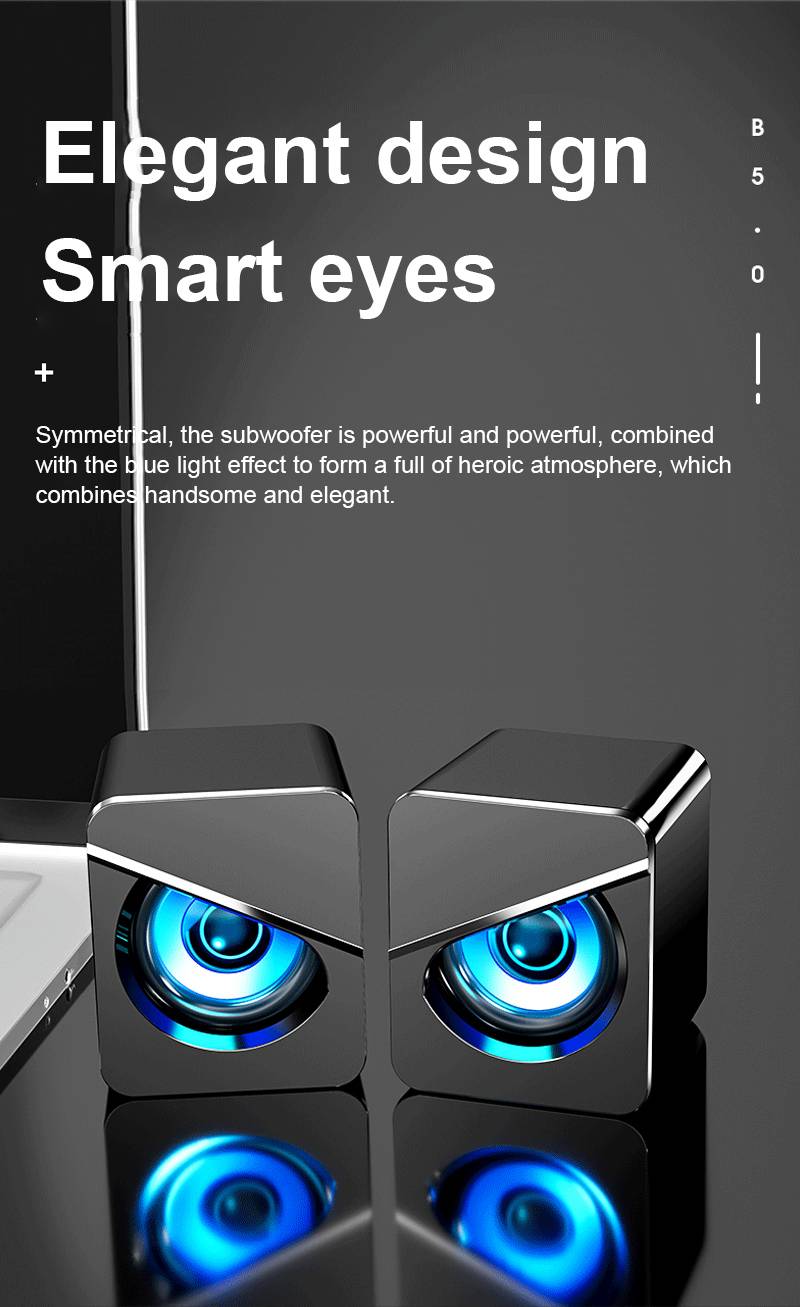 -Обновленная версия: двойные динамики, 4D стерео звук, регулировка громкости, кабель длиной около 1,4 метров, крутая освещающая, 3,55 мм и USB интерфейс