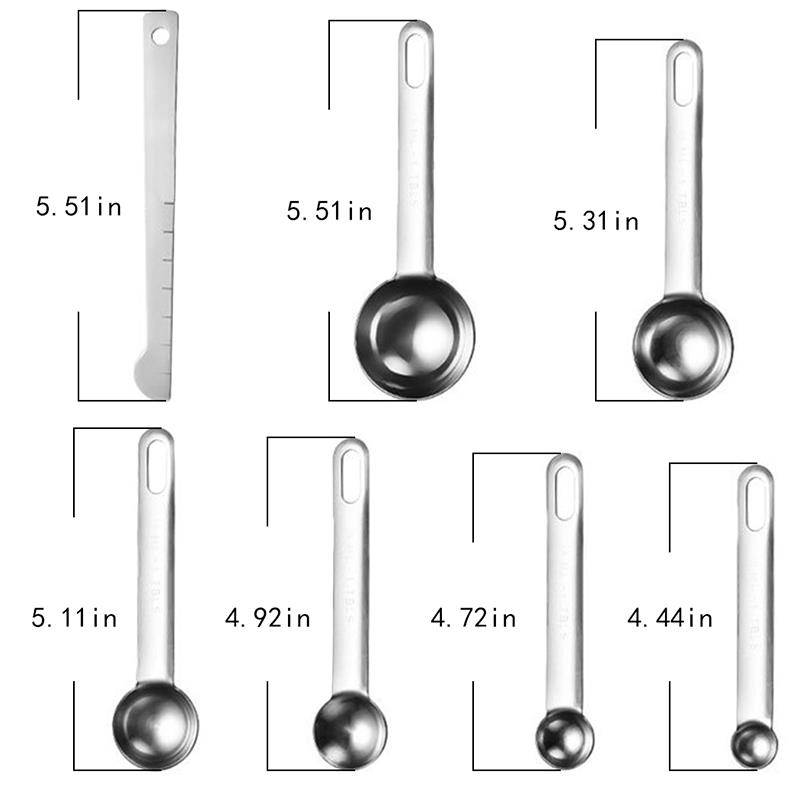 Набор мерных ложек, штабелируемые 7 шт. Мерная линейка из нержавеющей стали Мерная ложка цвет: серебристый
