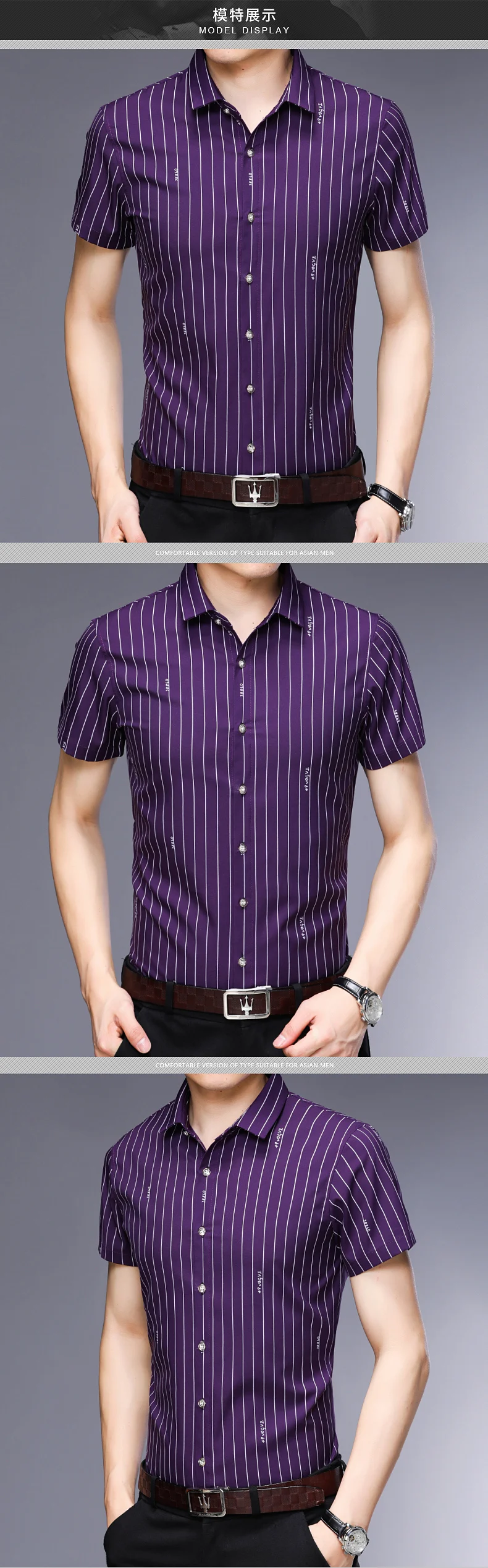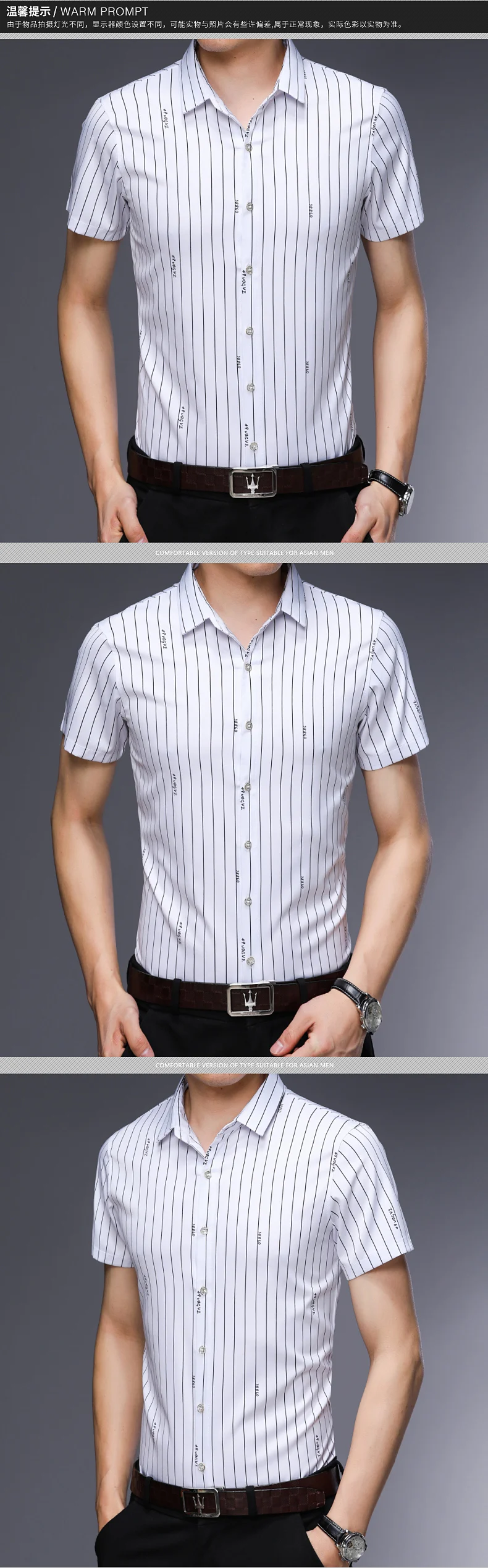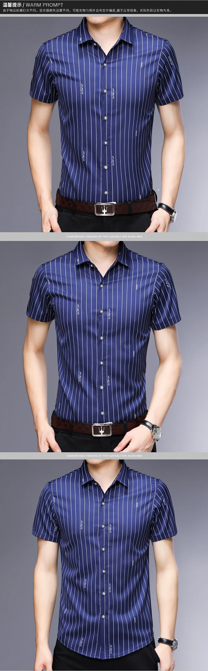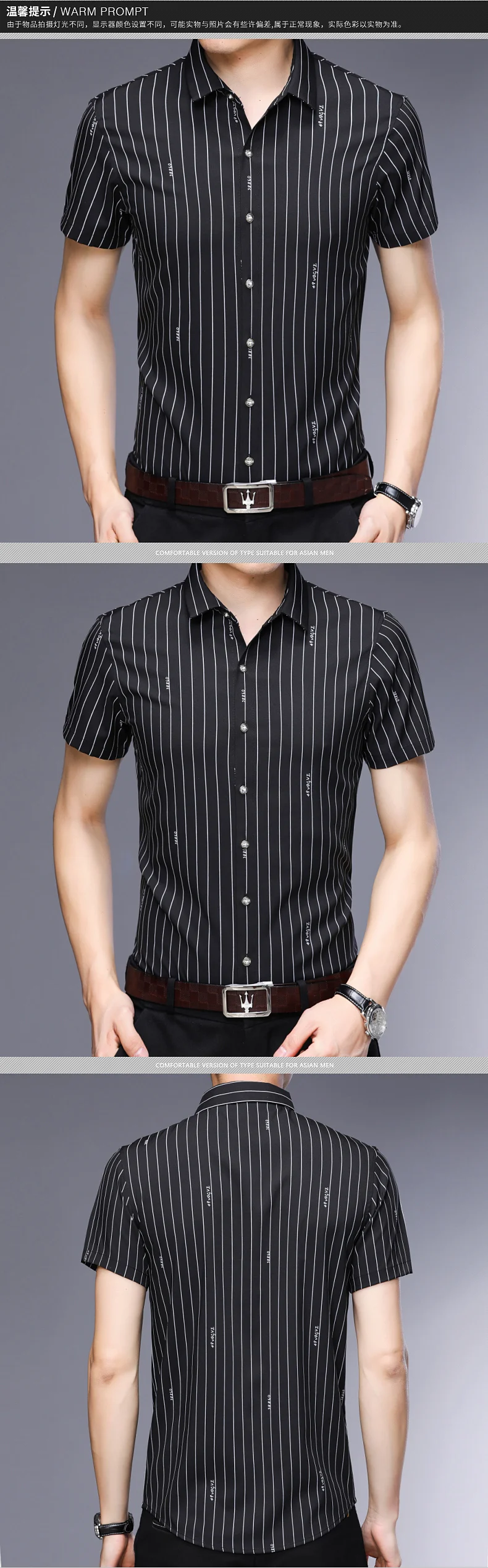 Описание товараНазвание продуктаЛучшие продажи дешевые повседневные Формальные облегающие мужские модные рубашки с коротким рукавом в Вертикальную Полоску