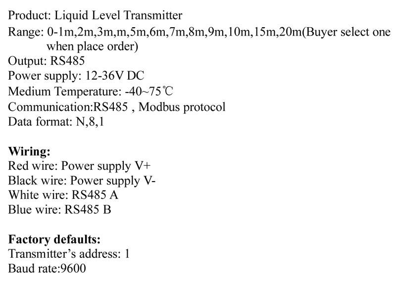 0-6 м, 7 м, 8 м, 9 м, 10 м датчик уровня воды с функцией связи RS485 передатчик уровня воды с кабелем датчика