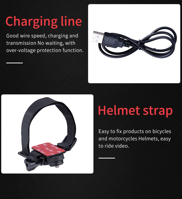 -1 камера DV -1 usb-кабель для зарядки -1 подвесная веревка -1 Инструкция -Крепление для шлема-1 шт. -1 х защелкивающееся кольцо -Крепежный кронштейн-1 шт.