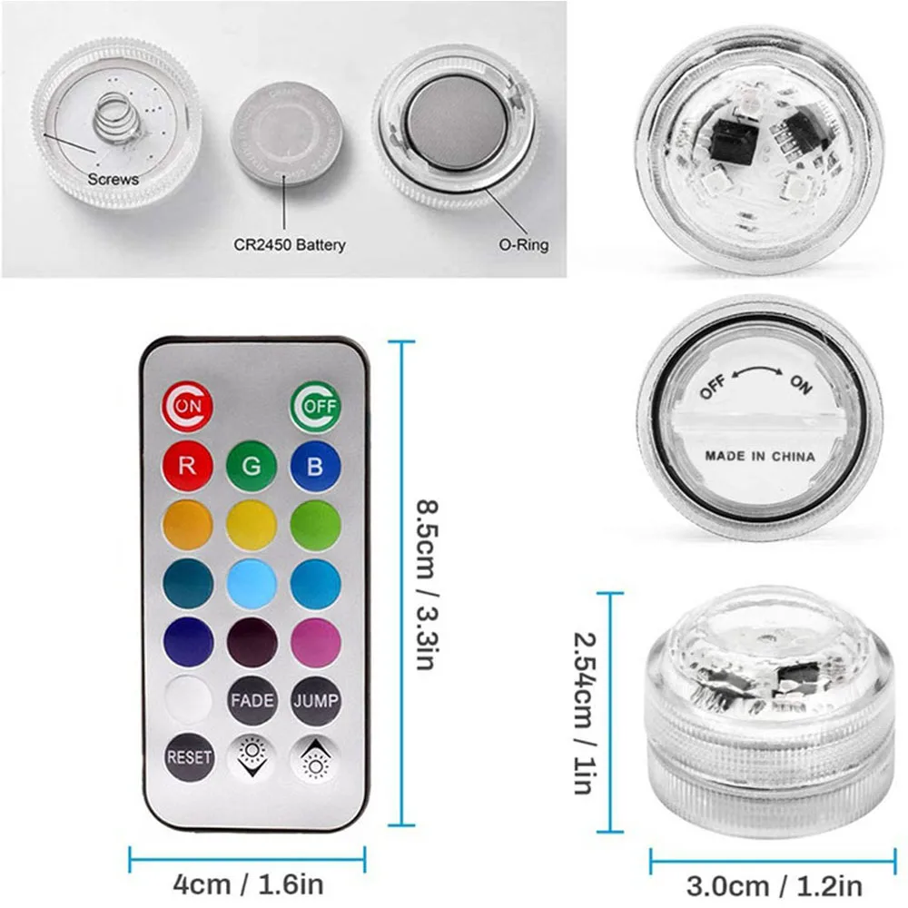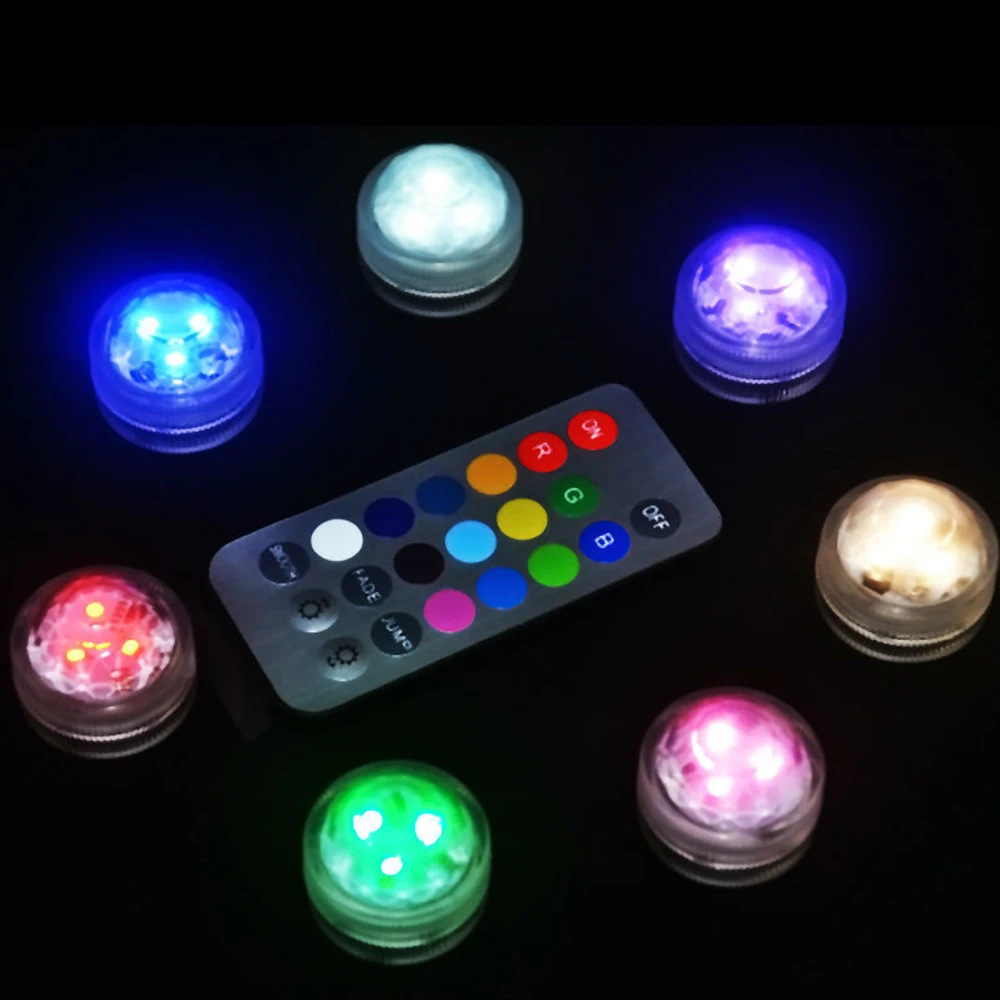 Погружной светильник RGB с дистанционным управлением, работающий от батареи, мини подводный светильник для аквариума, аквариума, пруда, бассейна, декора