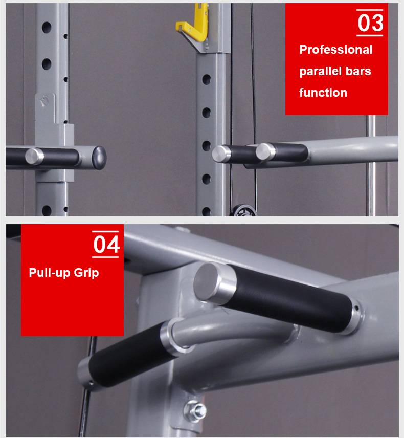 Свободный приседание, птица зажим грудь, наклонный скамья пресс, плоская скамья пресс, веревка тянуть вниз, оттягивания, сидя гребли, дедлайт подъема, баррель пресс, тяжелая атлетика штанги и другое многофункциональное оборудование.