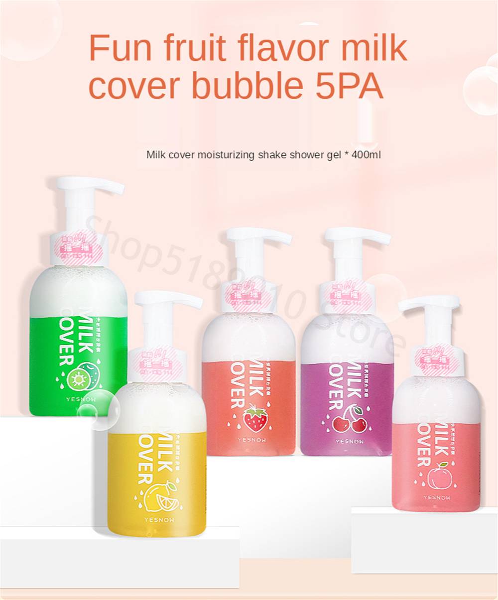 Дрожание рук молоко КРЫШКА пена для ванны гель для душа 400 мл стандартной длины с красочными фруктами облако пены мягкое очищение отбеливание увлажняющий гель для душа