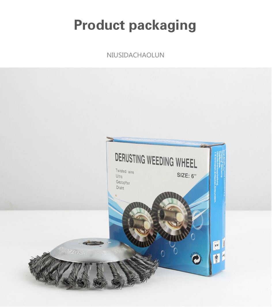 Щетка для сорняков изготовлена из углеродистой стальной проволоки, которая может нормально работать при ударе по камню и жесткому блоку. Срок службы будет в 10 раз дольше, чем у других триммеров.