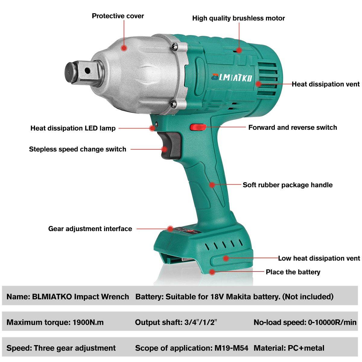 Большой Динамометрический ключ для автомобильных шин, динамометрический ключ 1900NM Характеристика: -Бесщеточный двигатель: бесщеточный двигатель не производит искры, когда он работает, и двигатель не носится. Обеспечивают мощный крутящий момент и увеличивают скорость и имеют долговечную и стабильную производительность. -1900N.m высокий крутящий момент: вал из вольфрамовой стали, высокая твердость и износостойкость, используется для ремонта тяжелого оборудования, промышленного обслуживания или любой другой работы, которая требует использования сильных больших гаек и болтов. -3 варианта скорости: обеспечивает пользователям точное управление затяжкой. -Три в одном переключателе: переключатель вперед/назад/замок, поддержка вперед или назад привода и замок безопасности, плавный переключатель переменной скорости Параметр: Название: ударный ключ BLMIATKO 1900NM Цвет: синий Материал: Поликарбонат + металл Напряжение: DC18V Батарея: подходит для детей возрастом от 18V Makita Батарея. (Не входит в комплект) Максимальный крутящий момент: 1900N.m Выходной вал: 3/4 "/1/2" Три переключения передач Первая передача/500-600N Вторая передача/800-1000N Третья передача 1500-1900N 41 гайка может быть загружена и разгружена 780-800 Максимальный крутящий момент 1900N Область применения: M19-M54 Скорость без нагрузки: 0-10000р/мин Посылка в комплекте 1 х электрический ключ (только инструмент, без аккумулятора) Примечание 1. Из-за ручного измерения допускается погрешность в 1-5 мм. Пожалуйста, убедитесь, что вы не возражаете перед покупкой. 2. Цвет может отличаться, обратите внимание. |